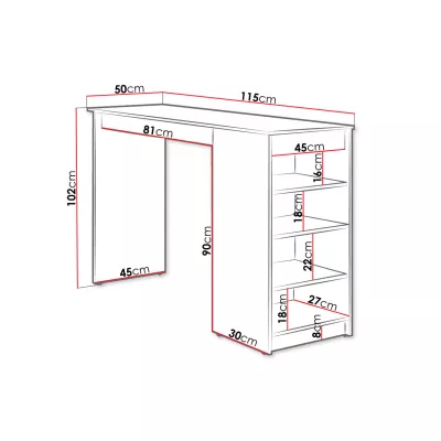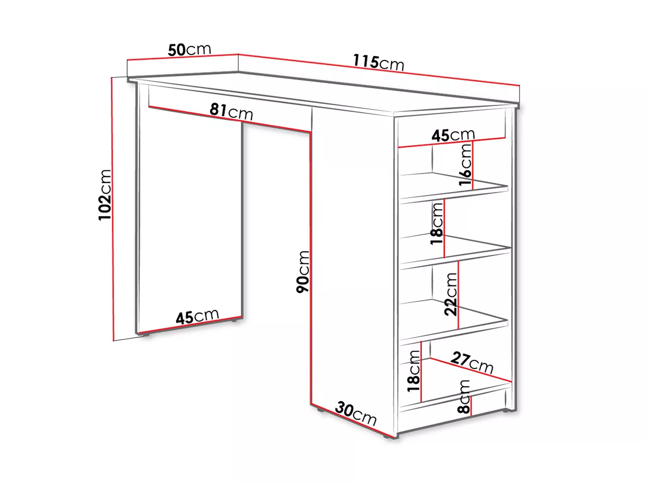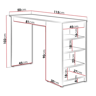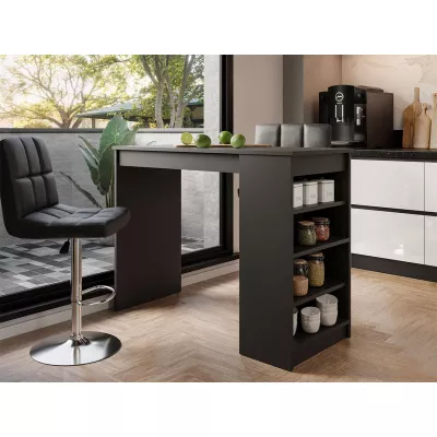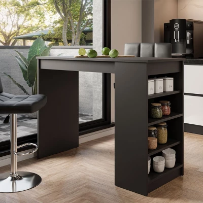 Barový stůl BIRKET je mimořádně funkčním a praktickým doplňkem kuchyně. Boční police poskytují prostor pro dekorace nebo drobné kuchyňské doplňky. Maximální zatížení stolu činí 30 kg.
