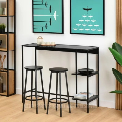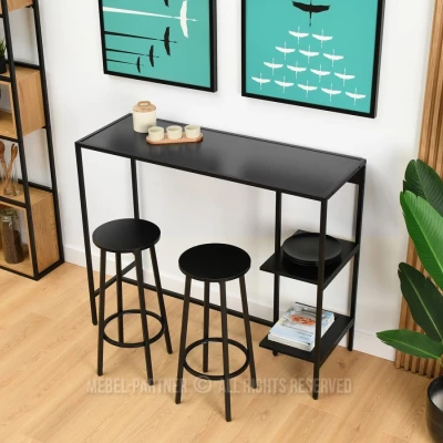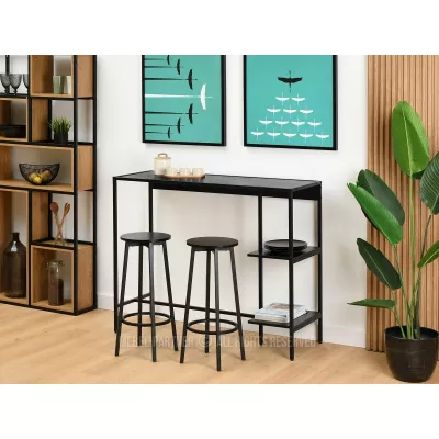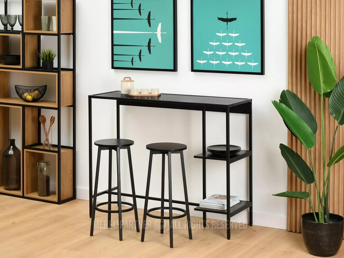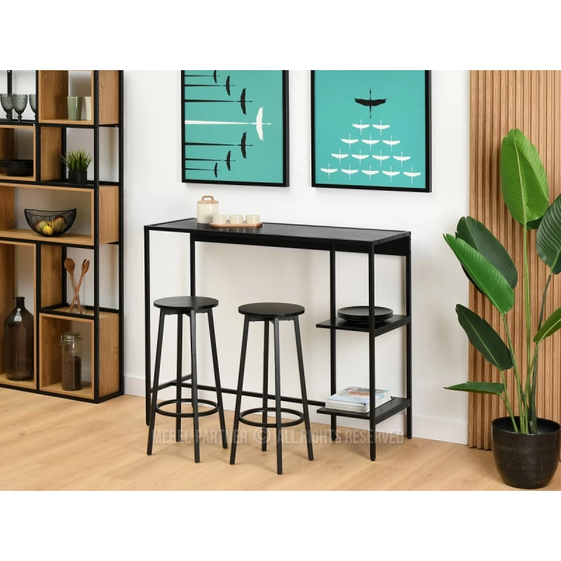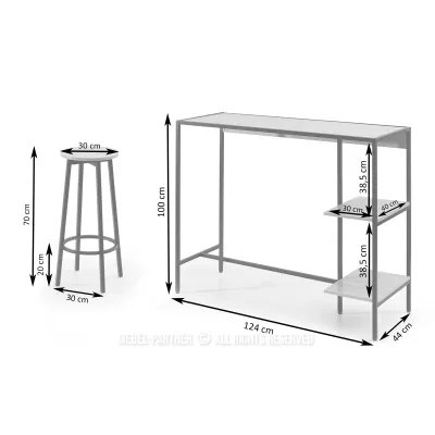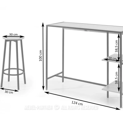 Barový stůl se židlemi RONAL je dokonale funkčním a praktickým doplňkem kuchyně. Boční police nabízí prostor k vystavení dekorací nebo kuchyňských potřeb.