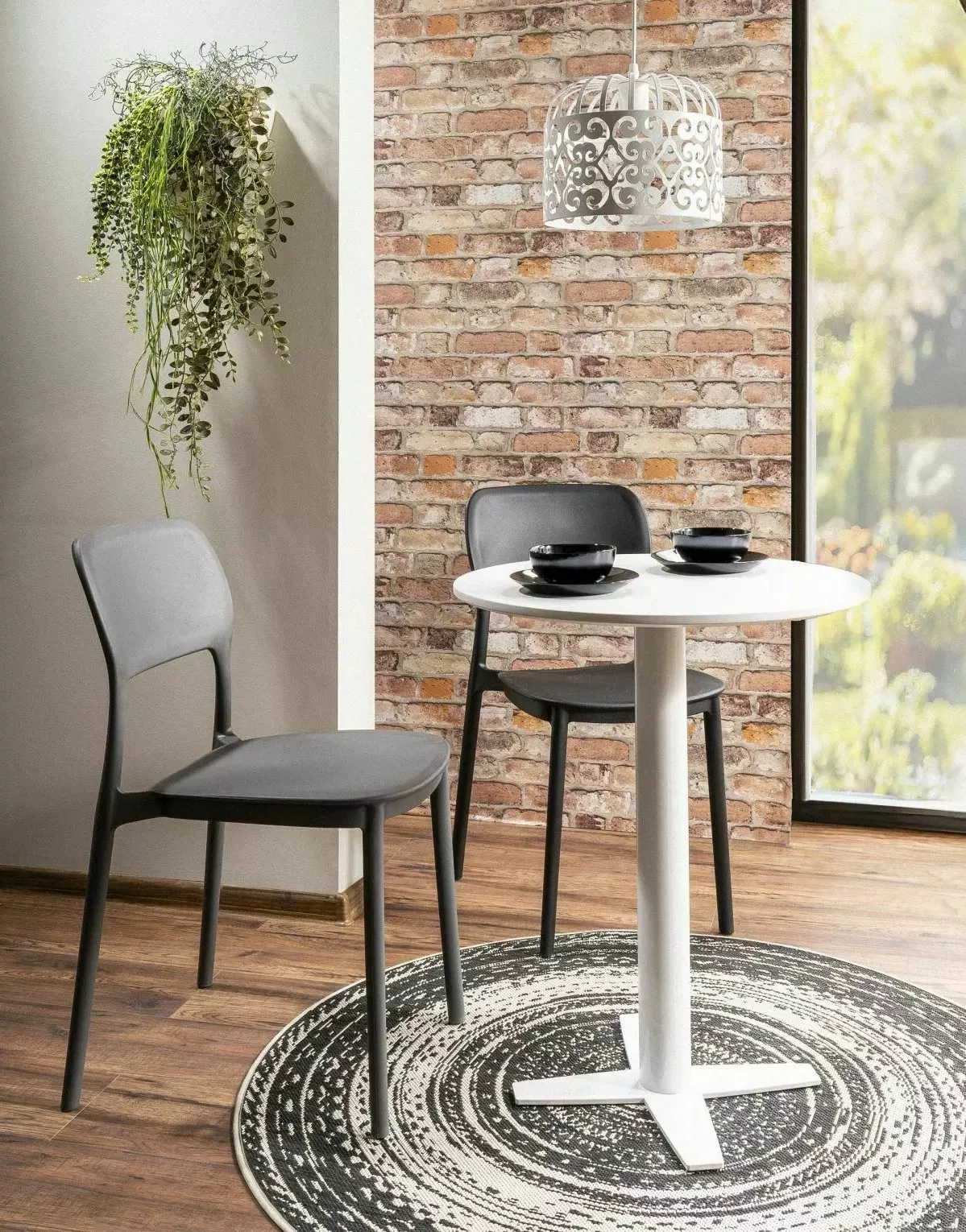Kulatý barový stůl ANDREI se díky svému minimalistickému designu stane univerzálním kouskem, který lze kombinovat s jakýmkoli dalším doplňkem či nábytkem. Stůl si najde místo v každé moderně laděné domácnosti.