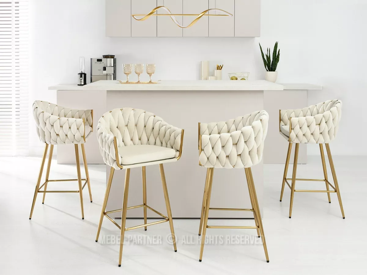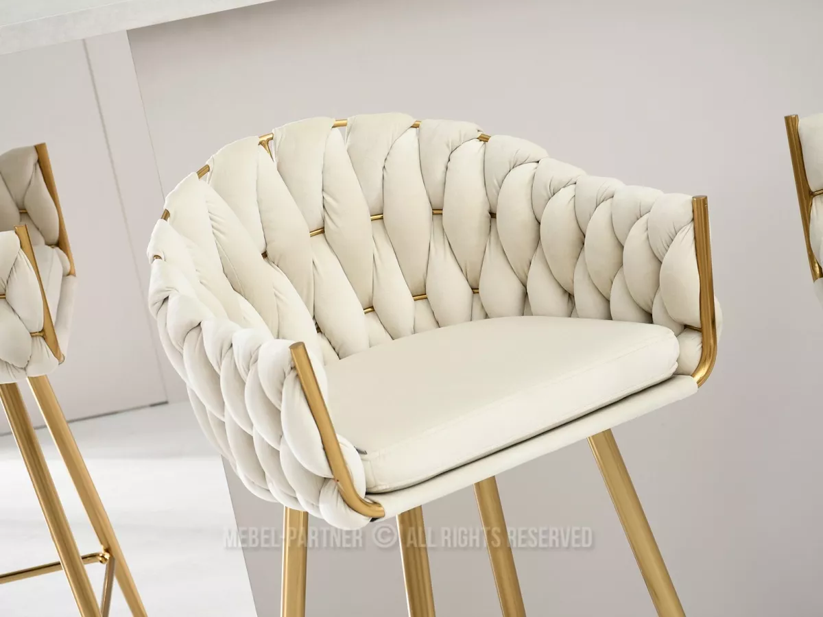 Čalouněná barová židle NEUS - krémová / zlatá