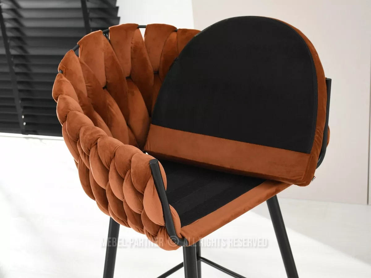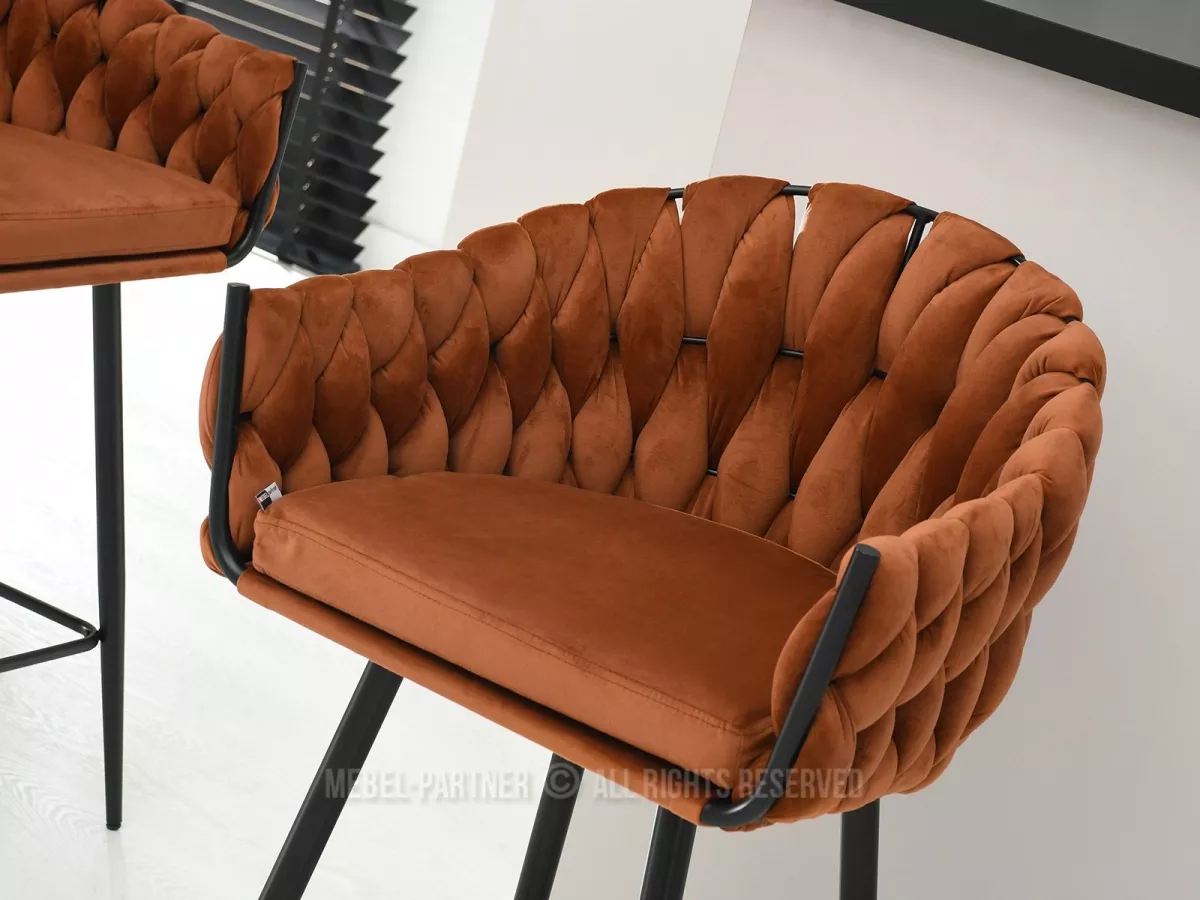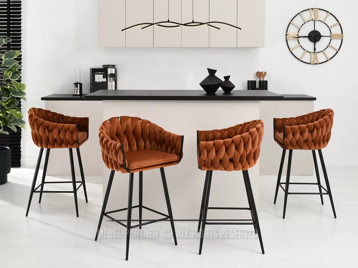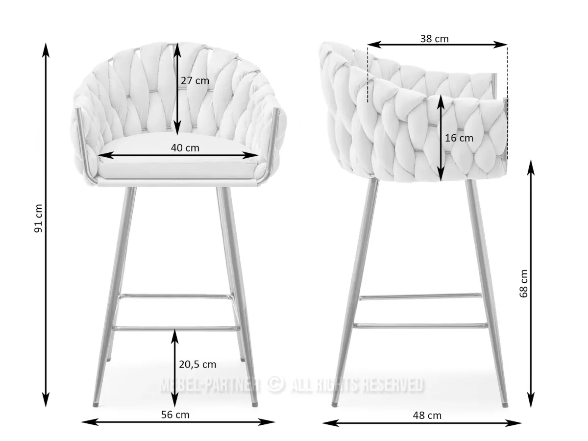 Čalouněná barová židle NEUS je doplněná o měkký podsedák. Kovová konstrukce je doplněná o opěrku nohou, která nabízí ještě větší komfort při sezení.