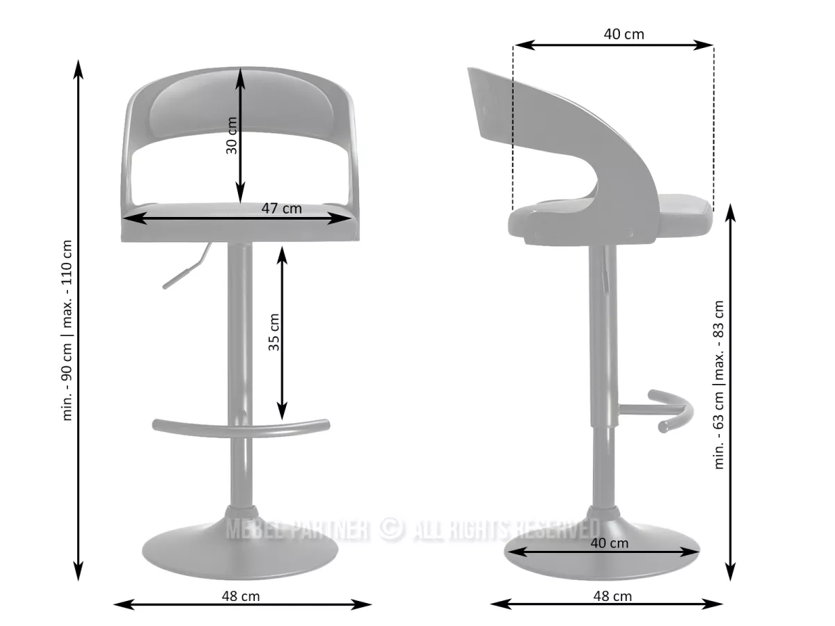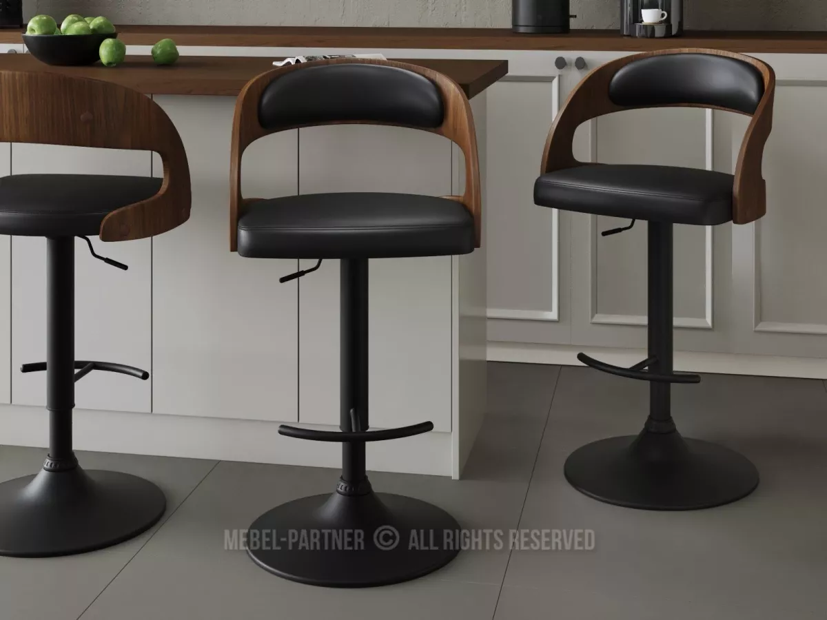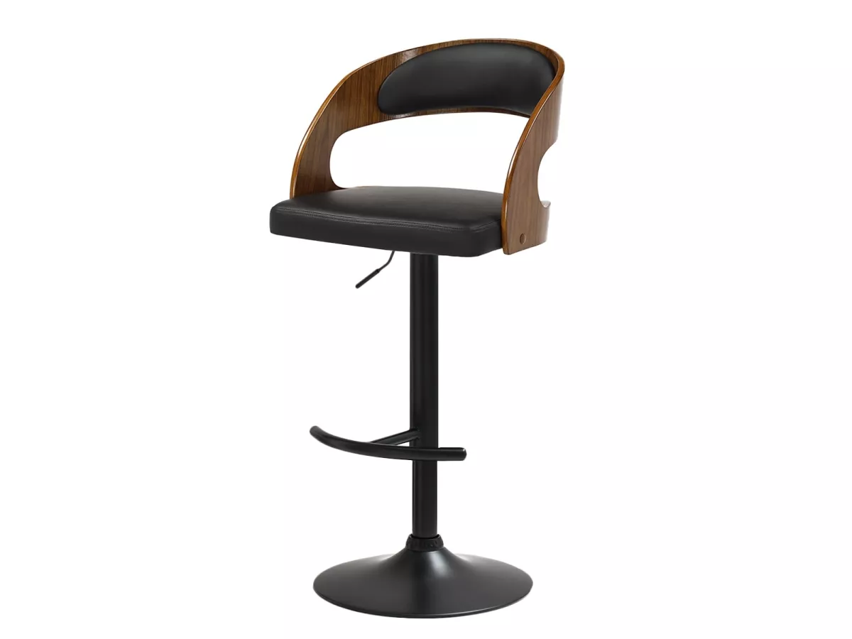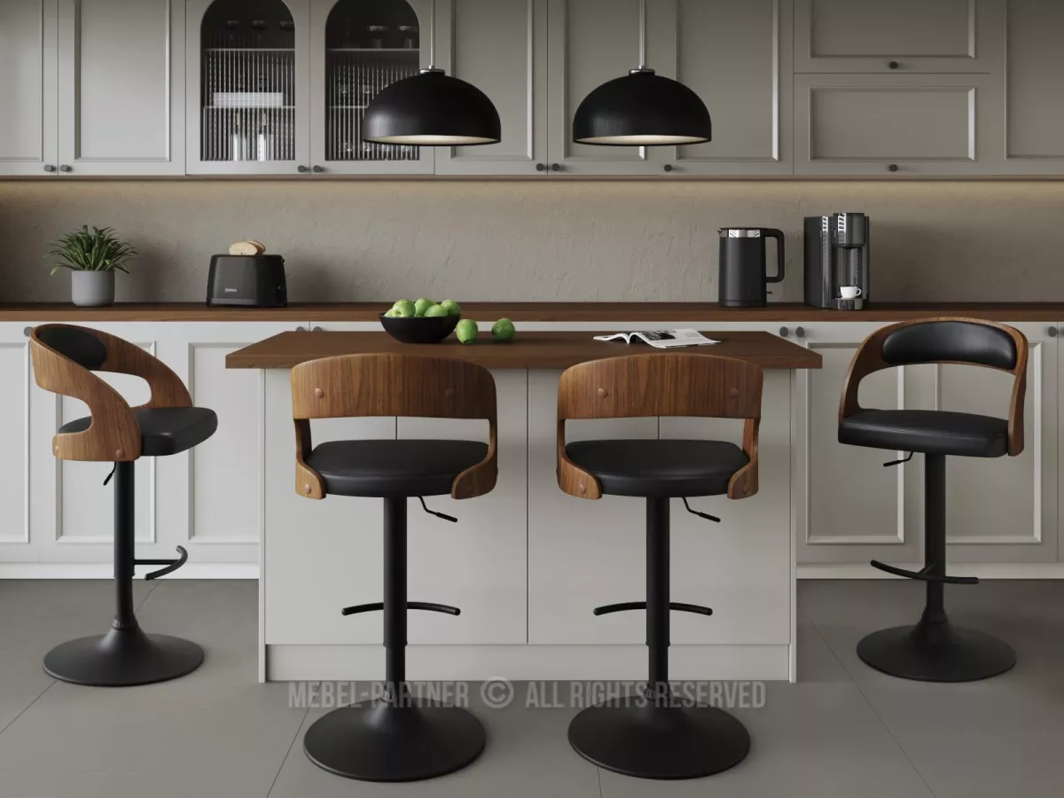 Nastavitelná barová židle ZUWENA dodá vaší místnosti nadčasový vzhled. Čalounění z ekologické kůže a dekor ořechu dodává židli luxusní nádech.