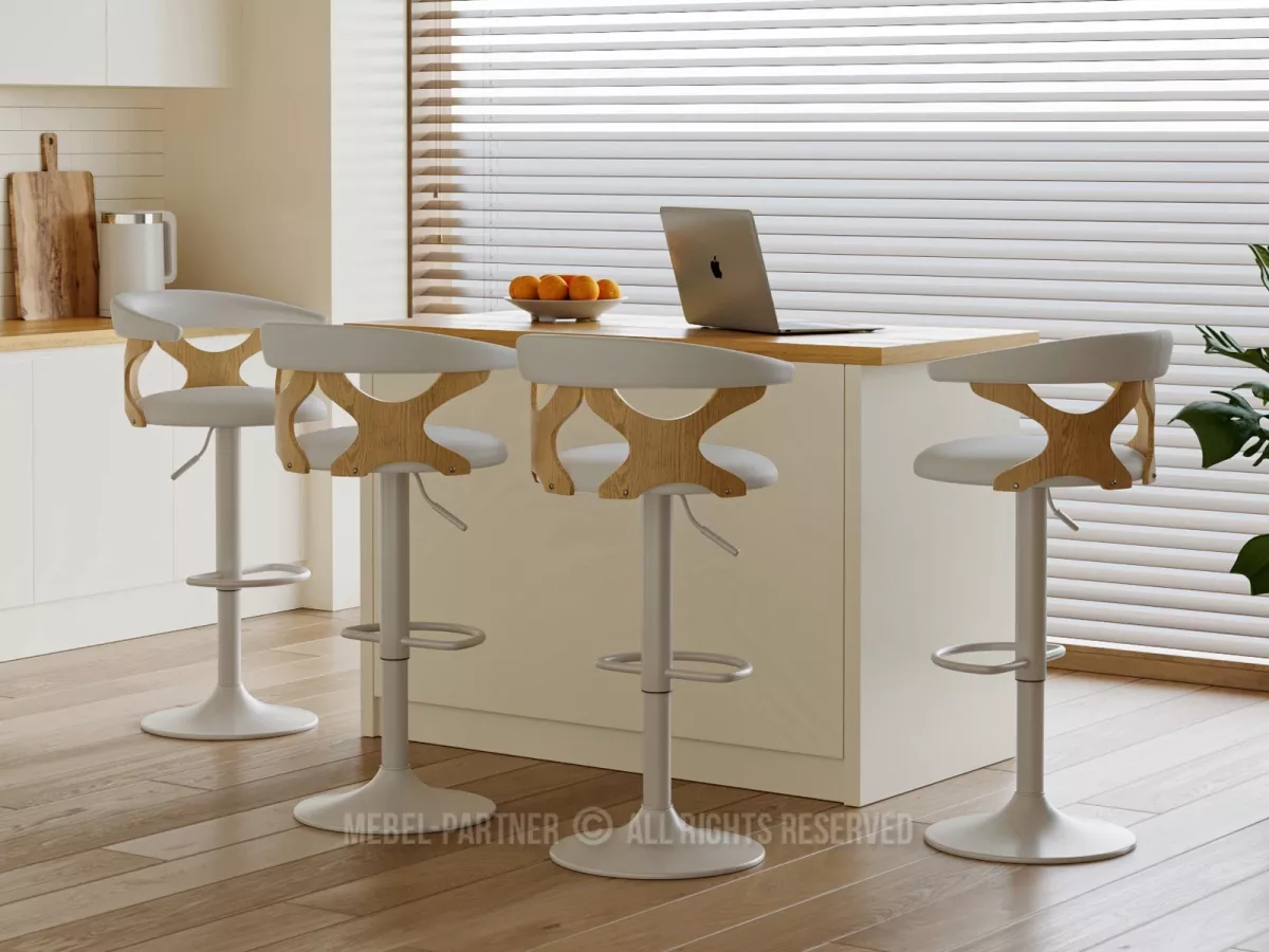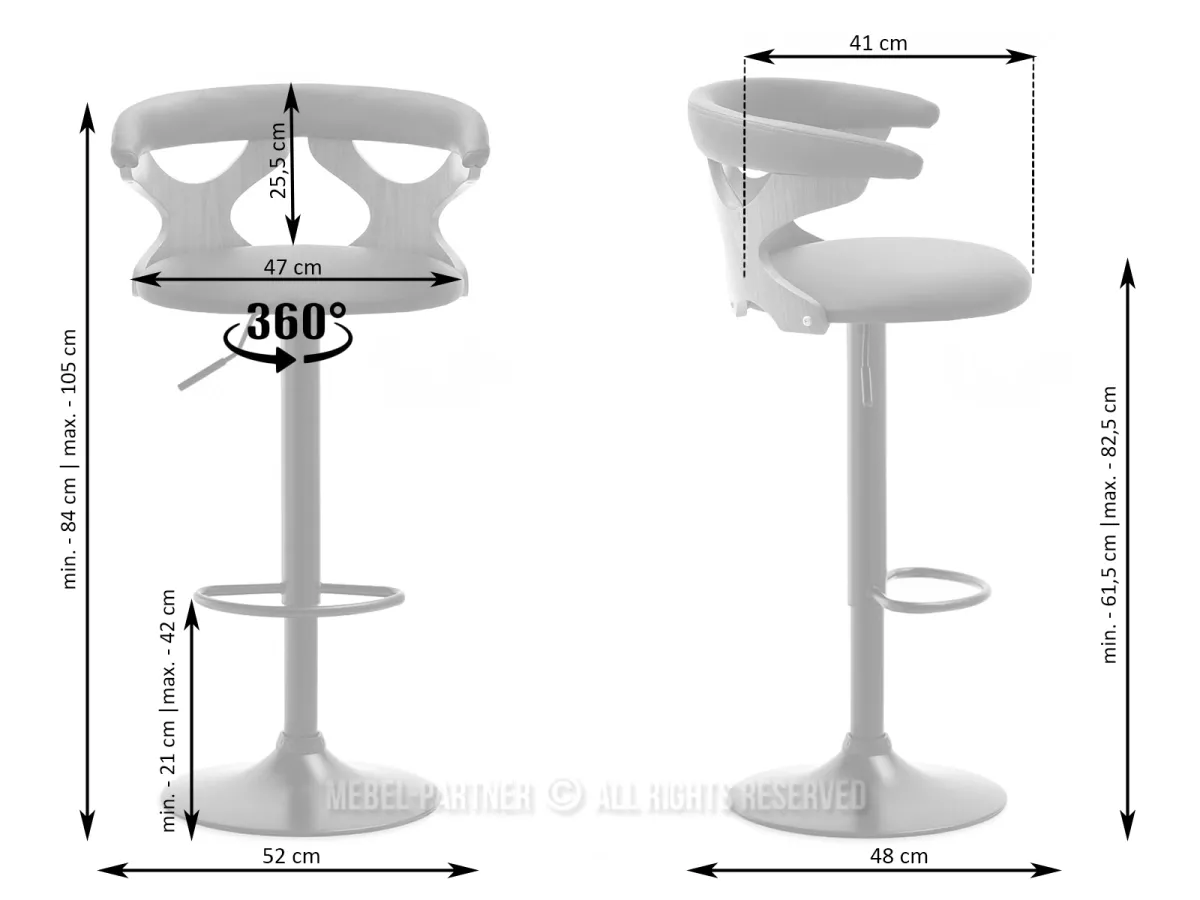 Designová barová židle ANELIS v kombinaci ohýbaného dřeva a eko kůže vytváří originální vzhled. Kovová konstrukce zaručuje vysokou stabilitu židle.