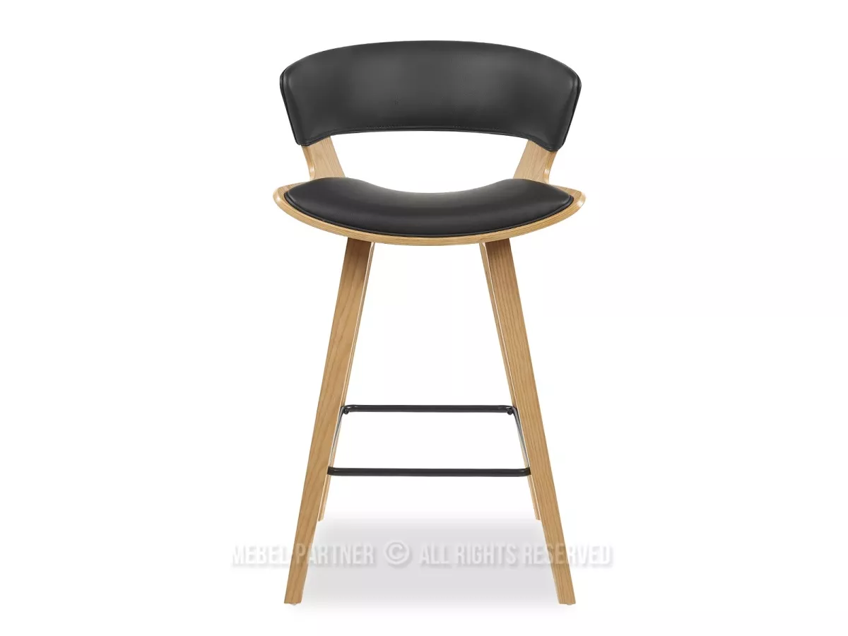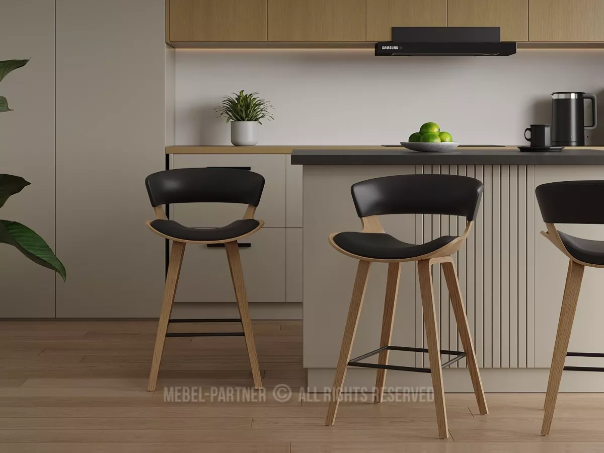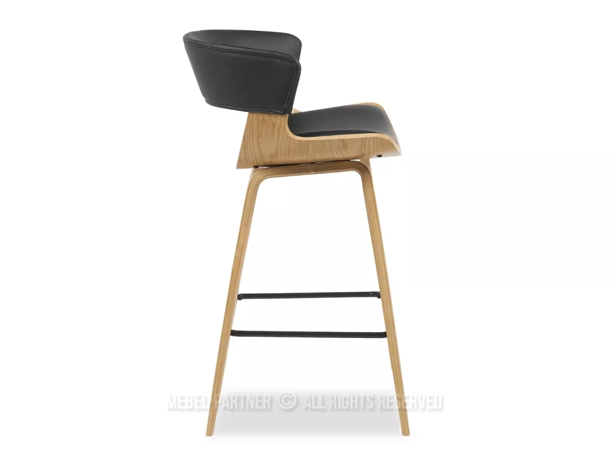 Barová židle JIMENA v kombinaci ohýbaného dřeva a eko kůže vytváří originální vzhled. Konstrukce z masivu zaručuje vysokou stabilitu židle.