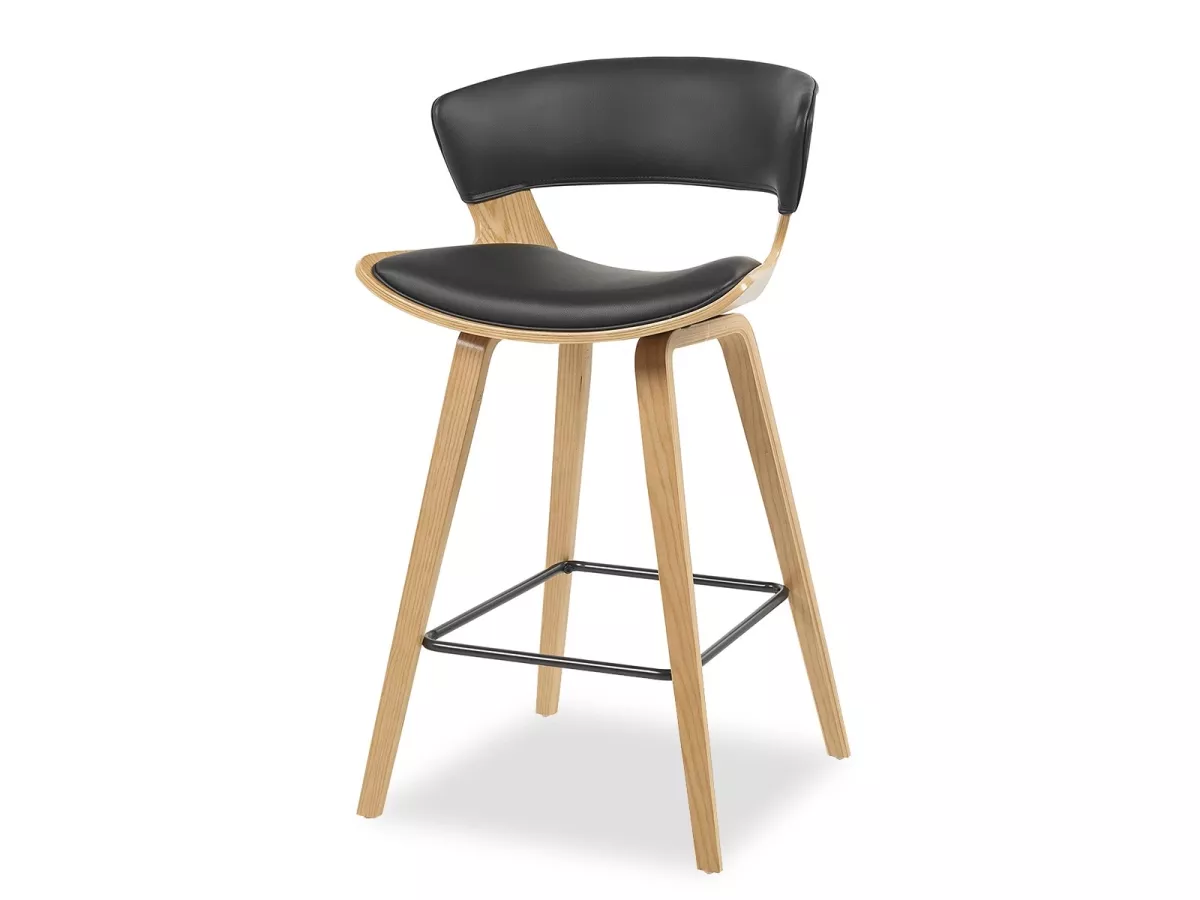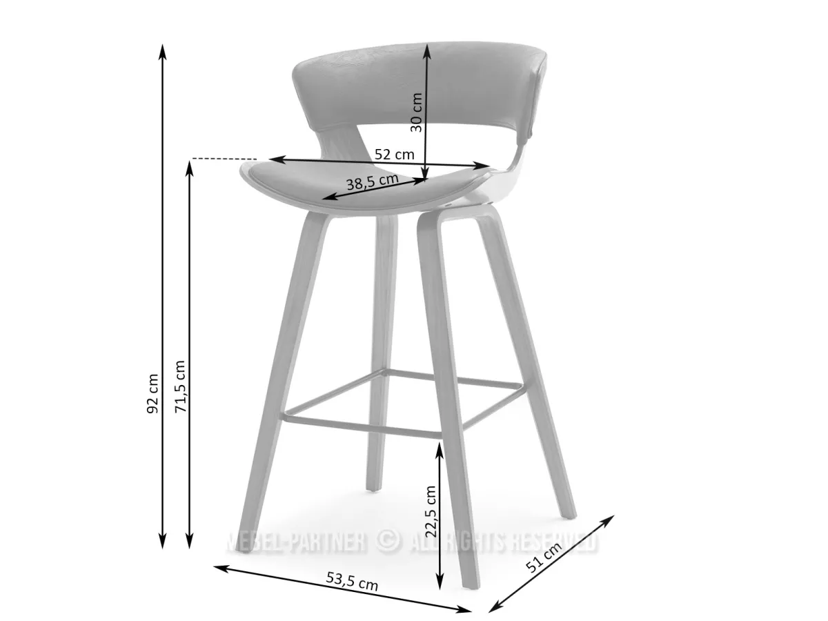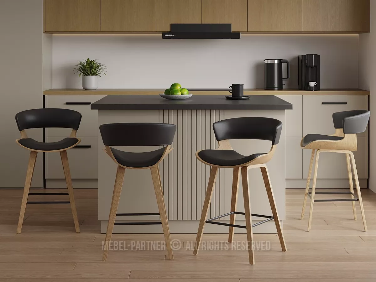 Barová židle JIMENA v kombinaci ohýbaného dřeva a eko kůže vytváří originální vzhled. Konstrukce z masivu zaručuje vysokou stabilitu židle.
