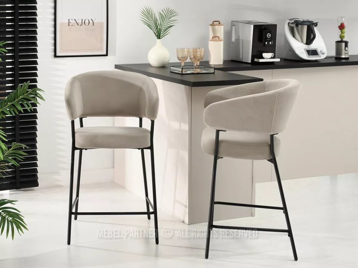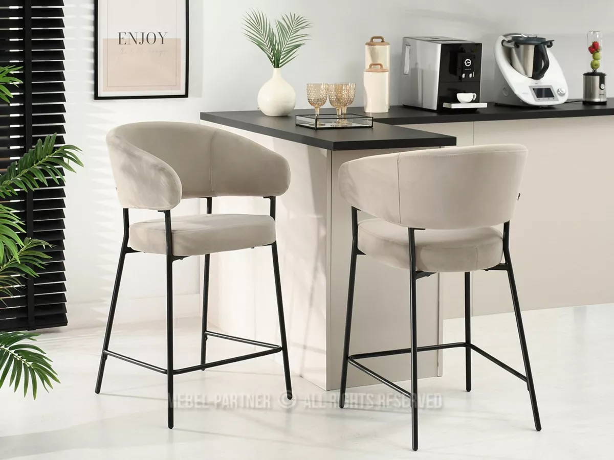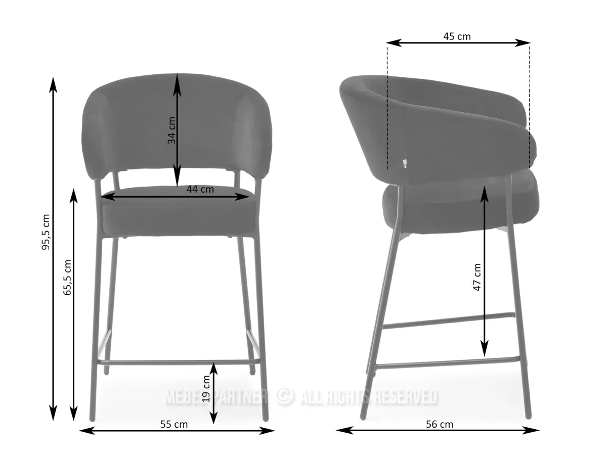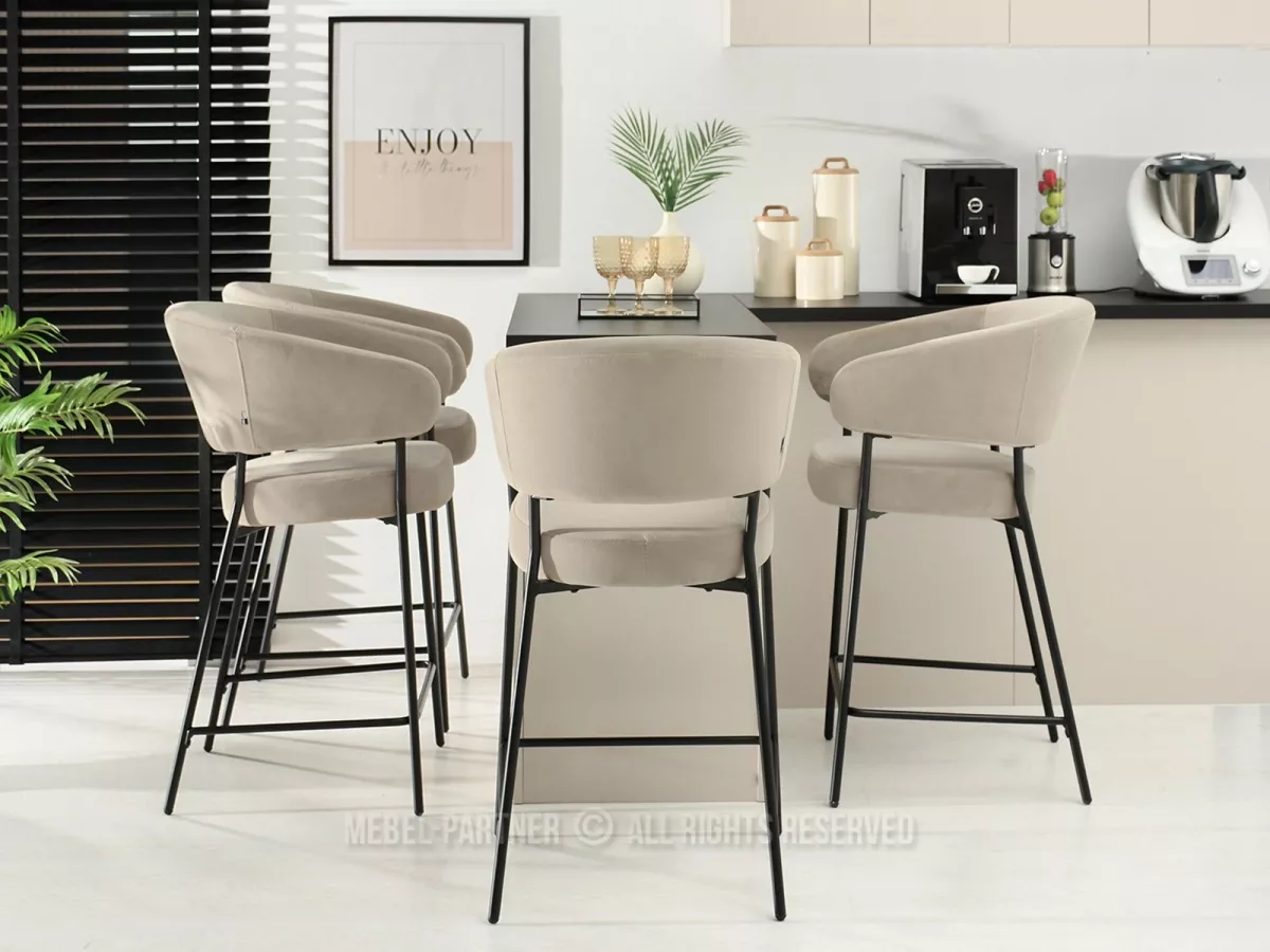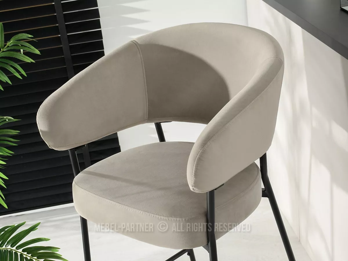 Čalouněná barová židle ISABELLA díky svému minimalistickému vzhledu skvěle zapadne do každého interiéru. Stabilitu židle zajišťuje kovová základna.