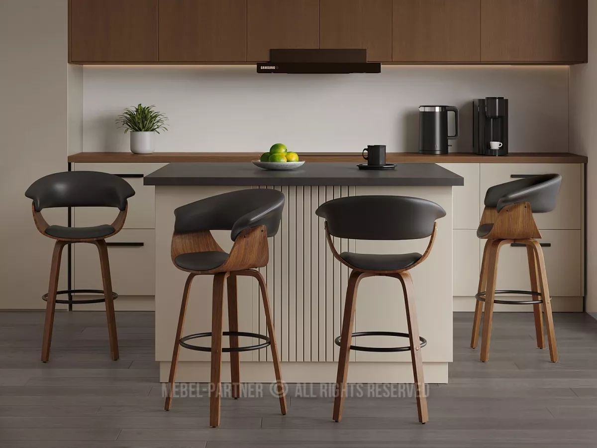 Barová židle MAITE nabízí komfort, estetiku a kvalitu. Disponuje kovovou opěrkou na nohy a otočnou funkcí.