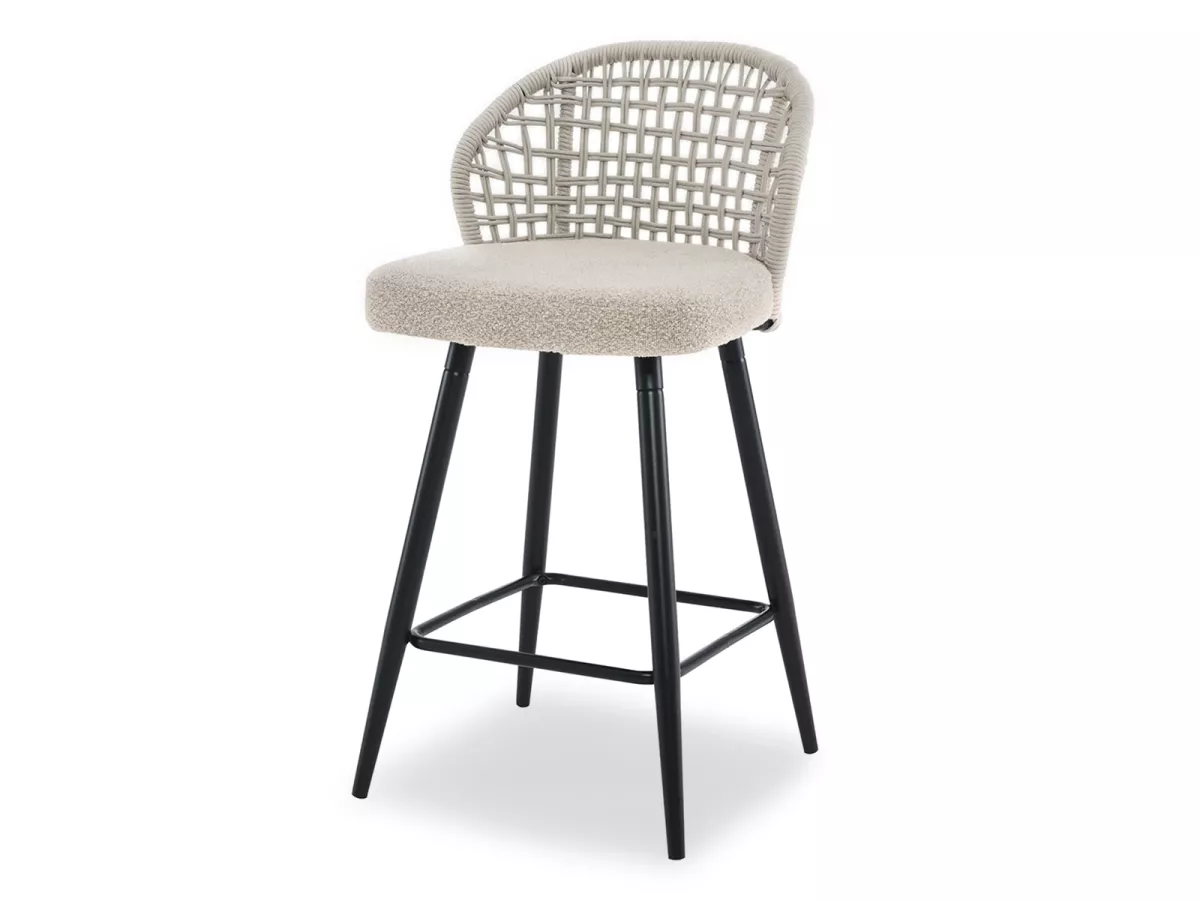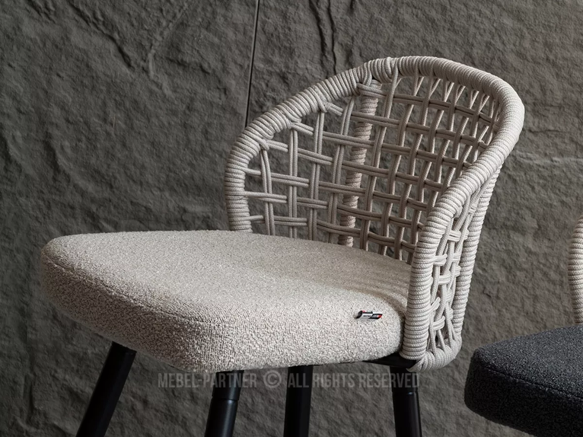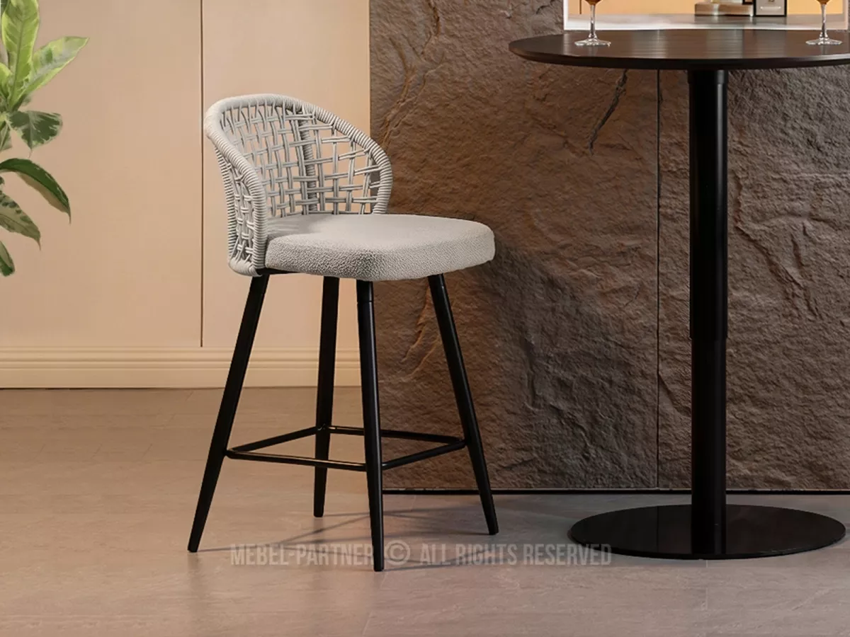 Barová židle SILVANA s tkaným opěradlem, čalouněná měkkou látkou se vyznačuje moderním designem. Kvalitu zpracování podtrhuje kovová podstava.
