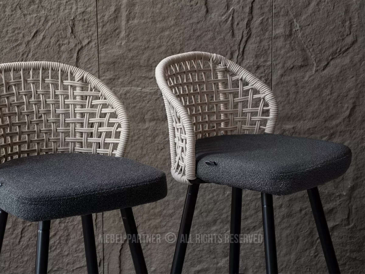 Barová židle SILVANA s tkaným opěradlem, čalouněná měkkou látkou se vyznačuje moderním designem. Kvalitu zpracování podtrhuje kovová podstava.