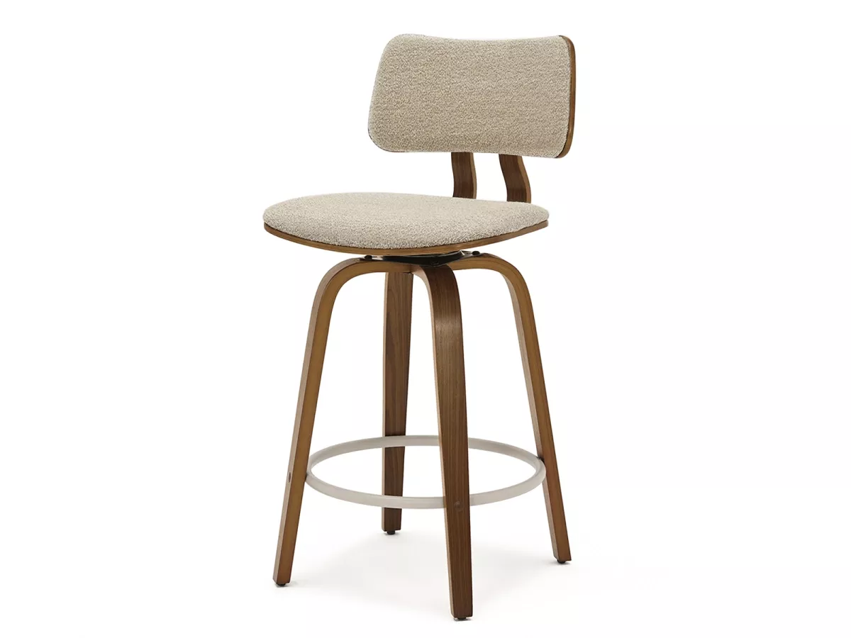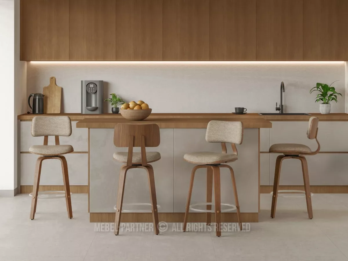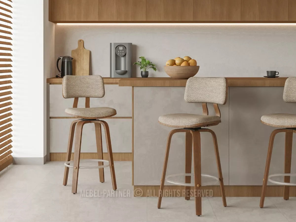 Otočná barová židle IBELINA bude dekorativním prvkem vašeho prostoru. Díky masivní dřevěné konstrukci s kovovou opěrkou na nohy je židle odolná a zároveň dodá kouzlo a přírodní charakter každému interiéru.
