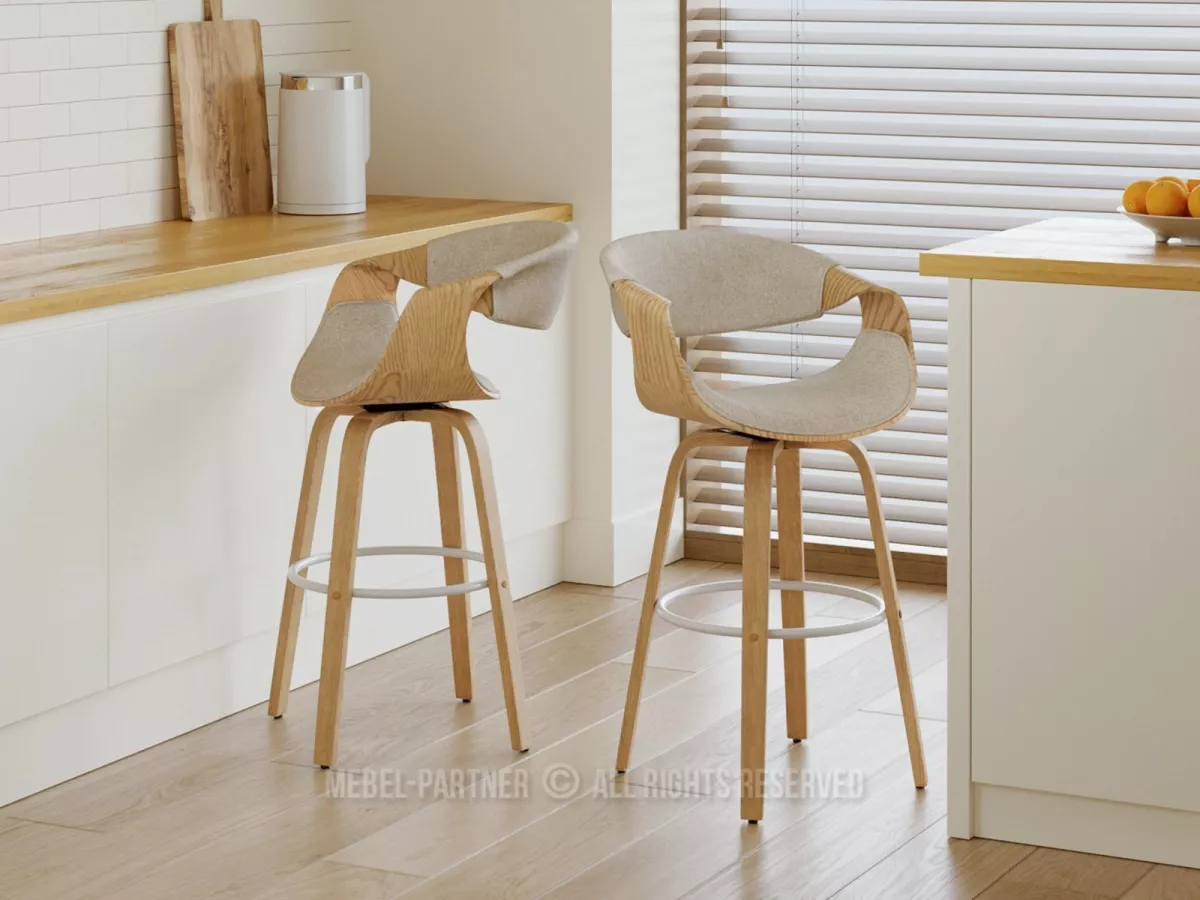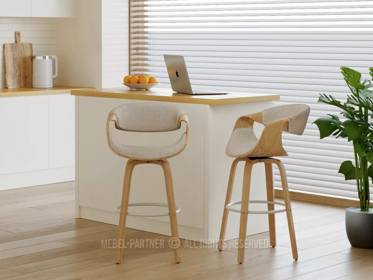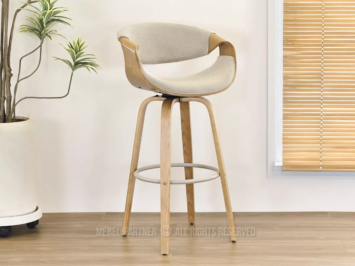 Designová barová židle SAROLTA v kombinaci ohýbaného dřeva a příjemné potahové látky vytváří originální vzhled. Konstrukce z masivu zaručuje vysokou stabilitu židle.