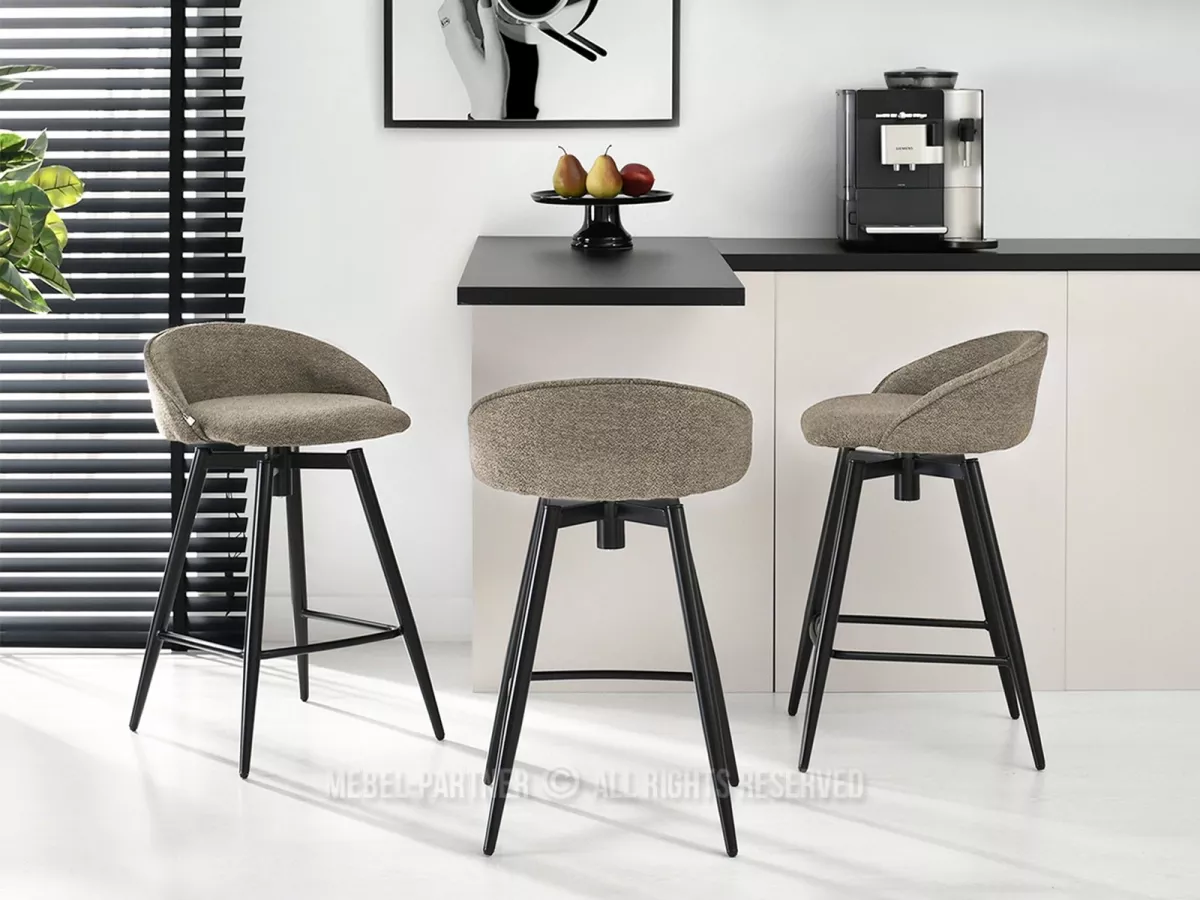 Čalouněná barová židle KATIANA doplní váš interiér a poskytne pohodlí. Kvalitu zpracování podtrhuje kovová otočná konstrukce.