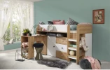 - Postel s pracovním stolem: Tato postel je ideální pro malé byty nebo studentské pokoje. Pod matrací se skrývá pracovní stůl, který se dá snadno vysunout a zasunout podle potřeby. Tak můžete mít v jedné místnosti jak místo na spaní, tak na učení nebo práci. Postel má také úložné prostory na obou stranách.