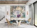 Jen máloco dokáže pokazit celkový dojem z do detailu „vyladěné” jídelny, jako nevhodně zvolený koberec pod stolem. V tomto případě platí pravidlo, že všechny nohy nábytku, a to včetně židlí, musí stát na koberci. V ideálním případě by tomu tak mělo být i po odsunutí židlí.