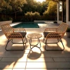 V altáncích si své místo najdou také zahradní stolky. Můžete si u nich v klidu vypít čaj nebo pozorovat zahradu. Stolek musí ladit s konceptem zahrady. Proto by měl být vyrobený z přírodního materiálu. Ideálně ze dřeva. Sáhnout můžete i po kameni nebo bambusu.