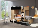 Pod ložnou plochou se může nacházet i skříň a prostor na učení, který zahrnuje nejen stůl, ale také police či zásuvku. Ložná plocha se obvykle nachází ve výšce 80 až 100 cm a do postele se děti dostávají po žebříku nebo schodcích. Proto je vhodná především pro starší děti.