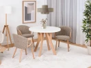 A právě bílá je vhodným vyvážením trošku tmavší žluté, nebo chcete-li zlaté. Takže stěny nechejte čistě bílé, případně je jen trochu ozdobte obrazy nebo květinou na polici. Zato pracovní desku linky a ostrůvku volte v mramorovaném provedení. Můžete využít bílý základ mramoru, světle šedou nebo i jemnou růžovou. S tou to ale raději nepřehánějte. Když už jsme u růžové, matná a jemná padne jako ulitá barovým židlím. Lustry volte klidně se zlatými nebo mosaznými rámy stínidel. Ať máte komplet v jednom stylu.