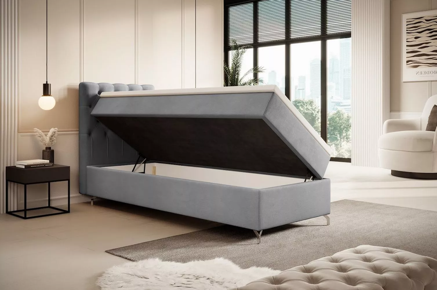 Boxspringová postel ADRIA se hodí do všech moderních studentských pokojů. Čalouněné čelo zamezí poškrábání a zašpinění zdi. Úložný prostor se nachází pod výklopným roštem.