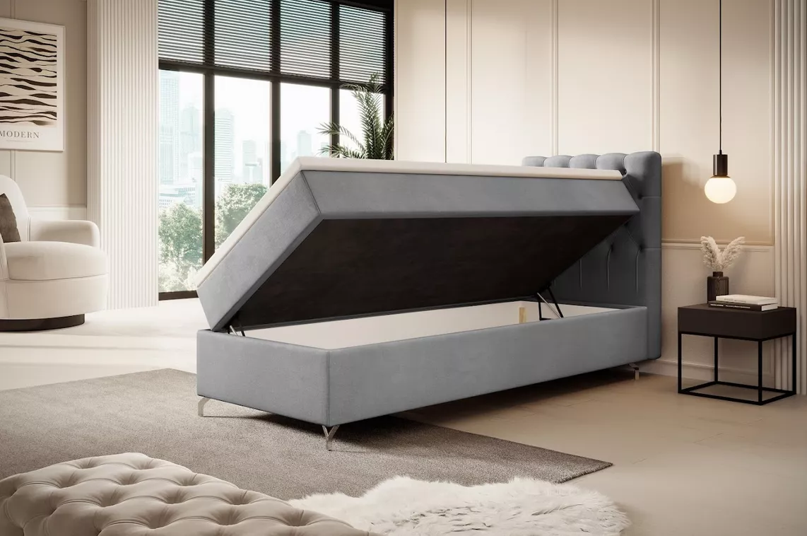 Čalouněná postel 90x200 ADRIA s úložným prostorem - pravá, světle šedá