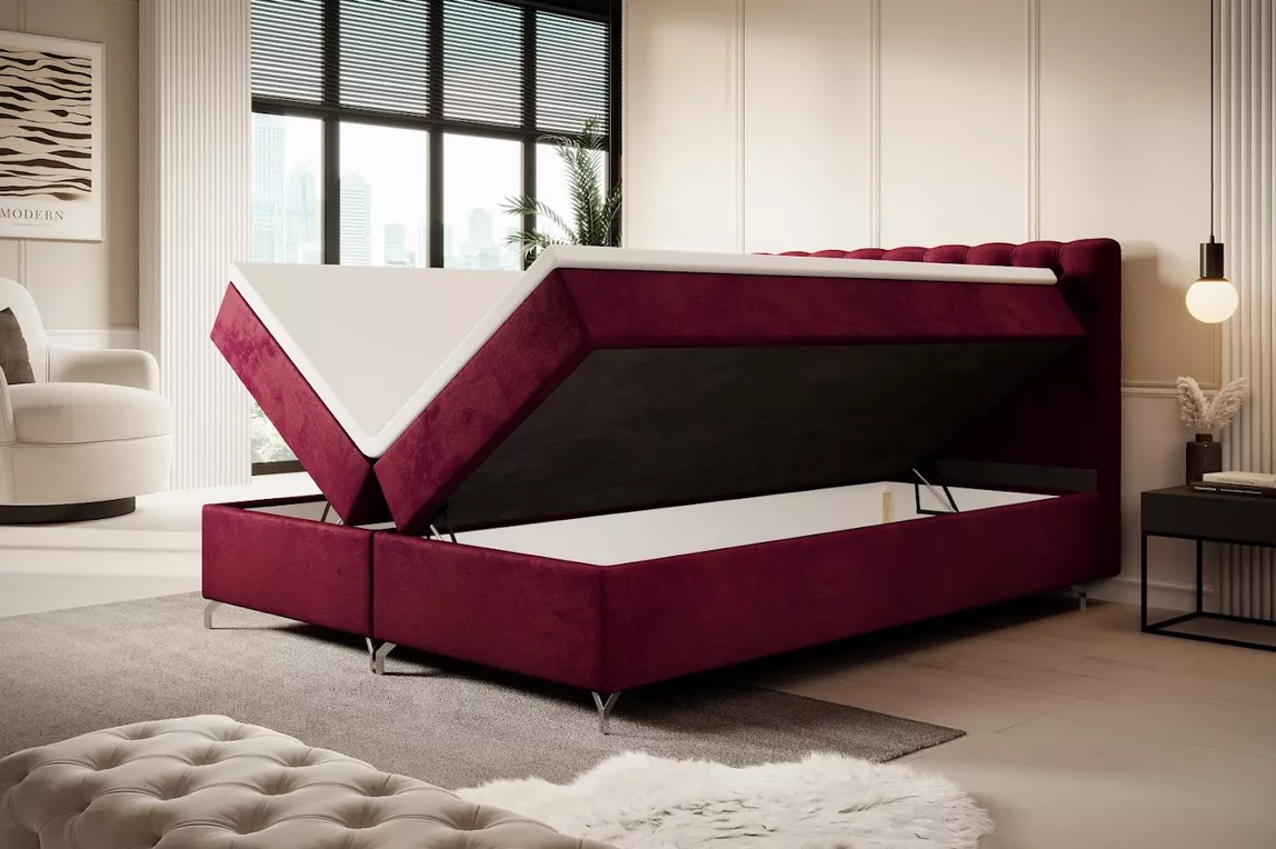 Boxspringová postel ADRIA se hodí do všech moderních ložnic. Čalouněné čelo zamezí poškrábání a zašpinění zdi. Disponuje 2 úložnými prostory pod výklopnými rošty.