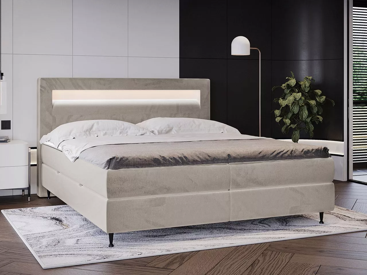 Hotelová postel s LED osvětlením 140x200 ORLANDO - latte + topper ZDARMA