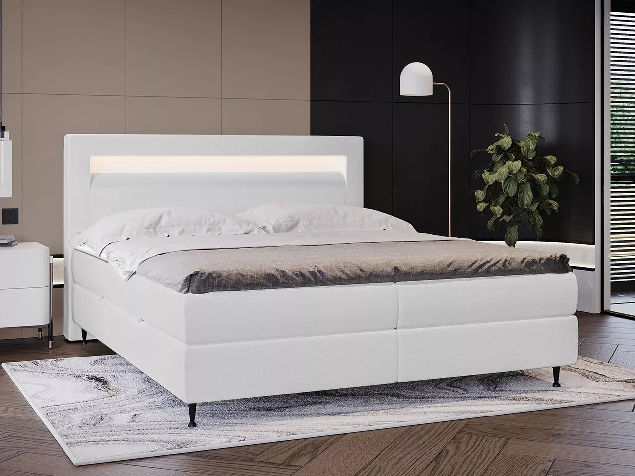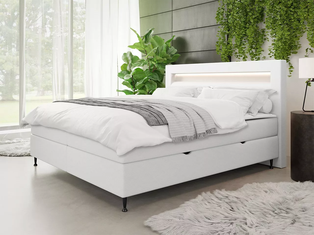 Hotelová postel s LED osvětlením 160x200 ORLANDO - bílá ekokůže + topper ZDARMA