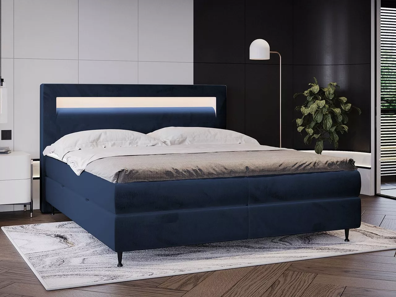Hotelová postel s LED osvětlením 180x200 ORLANDO - modrá + topper ZDARMA