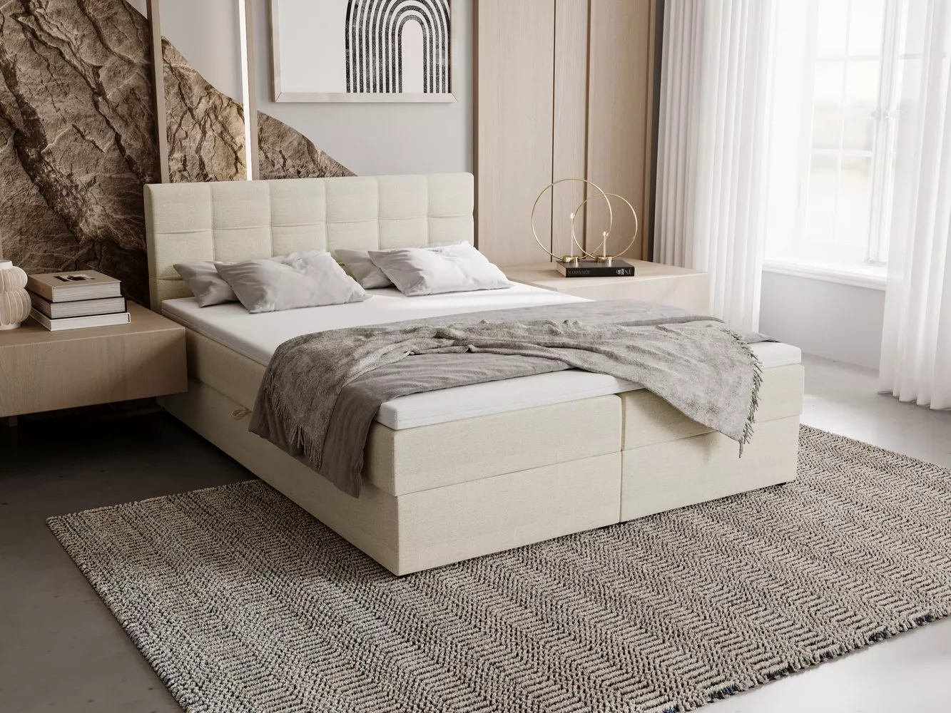 Čalouněná postel 140x200 ELSIE 1 s úložným prostorem - světle béžová