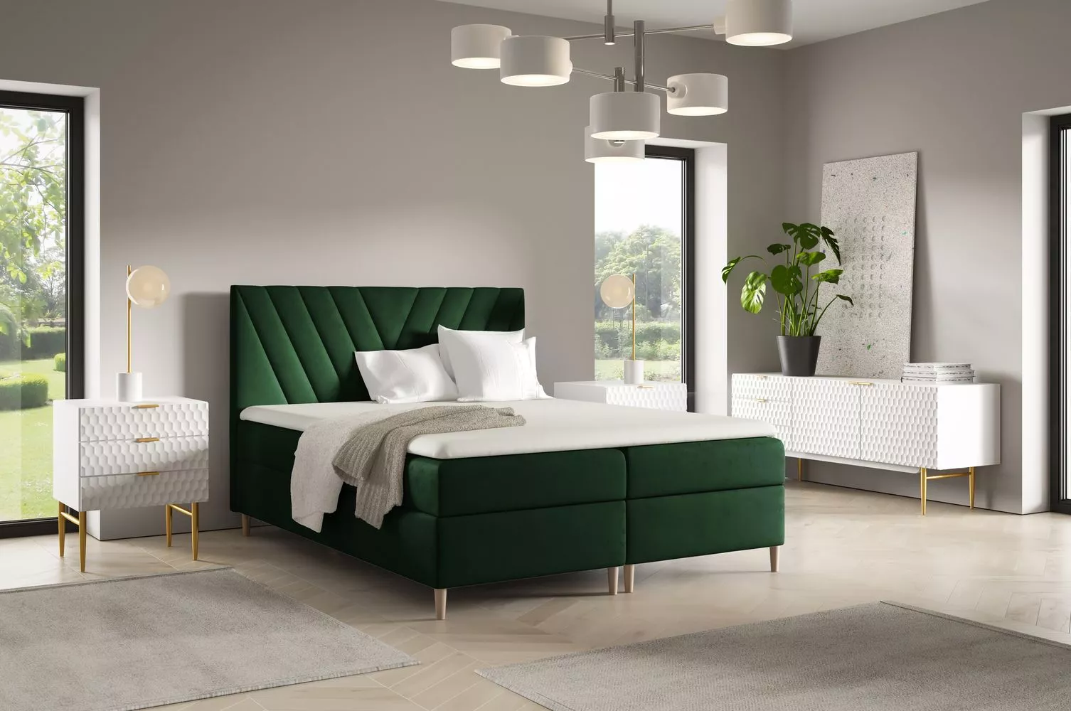 Kontinentální postel 120x200 ANAMARI - láhvově zelená + topper ZDARMA