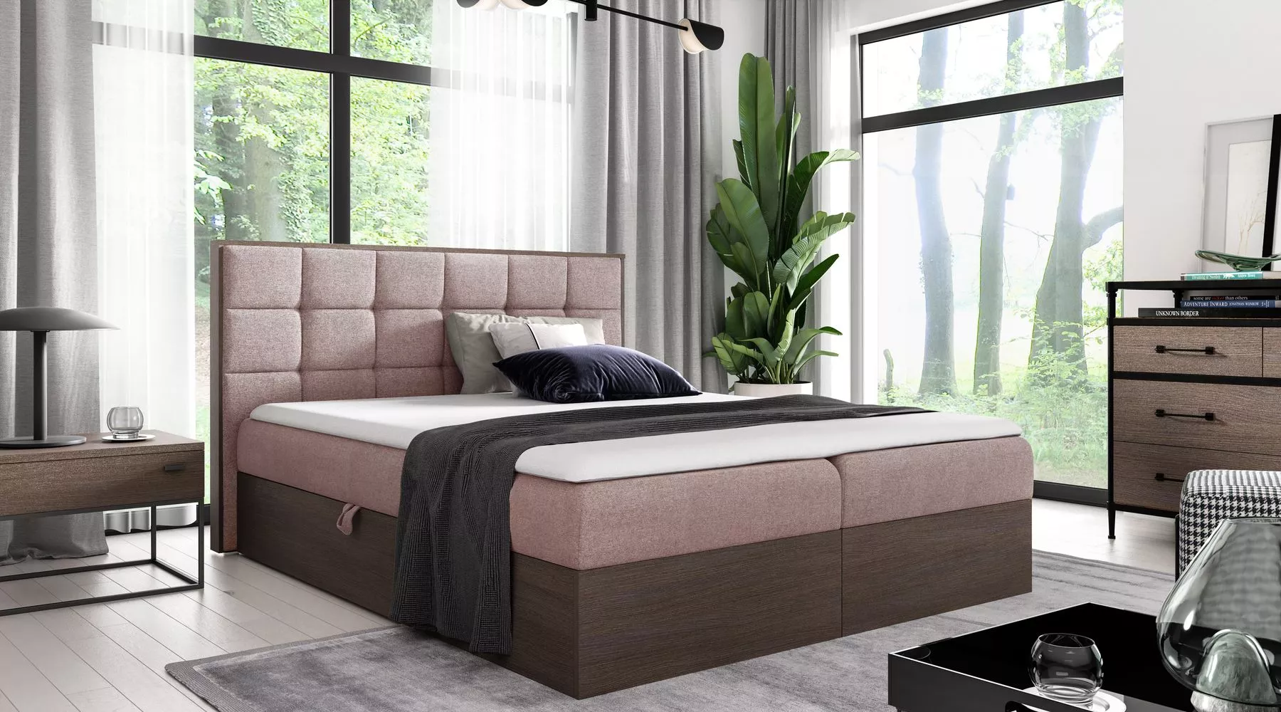 Kontinentální postel 120x200 CHANTELLE 1 - tmavý dub / růžová + topper ZDARMA