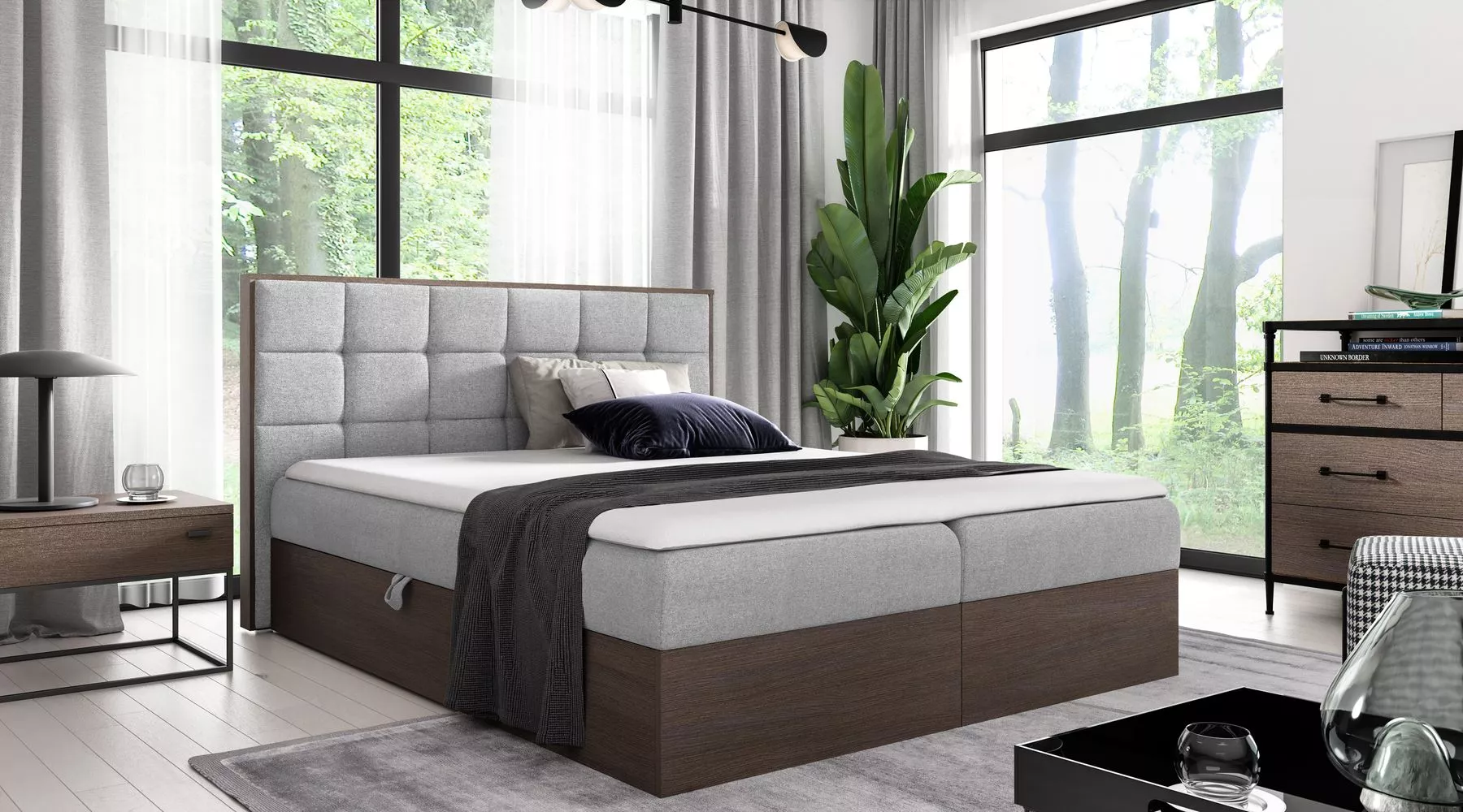 Kontinentální postel 160x200 CHANTELLE 1 - tmavý dub / popelavá + topper ZDARMA