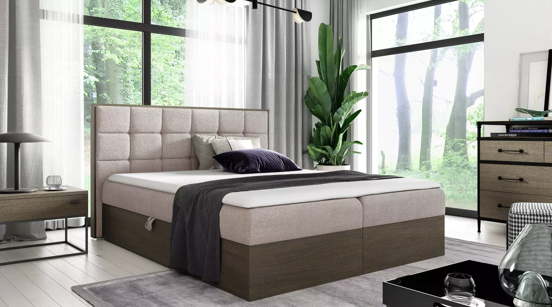 Kontinentální postel 200x200 CHANTELLE 1 - tmavý dub / béžová + topper ZDARMA