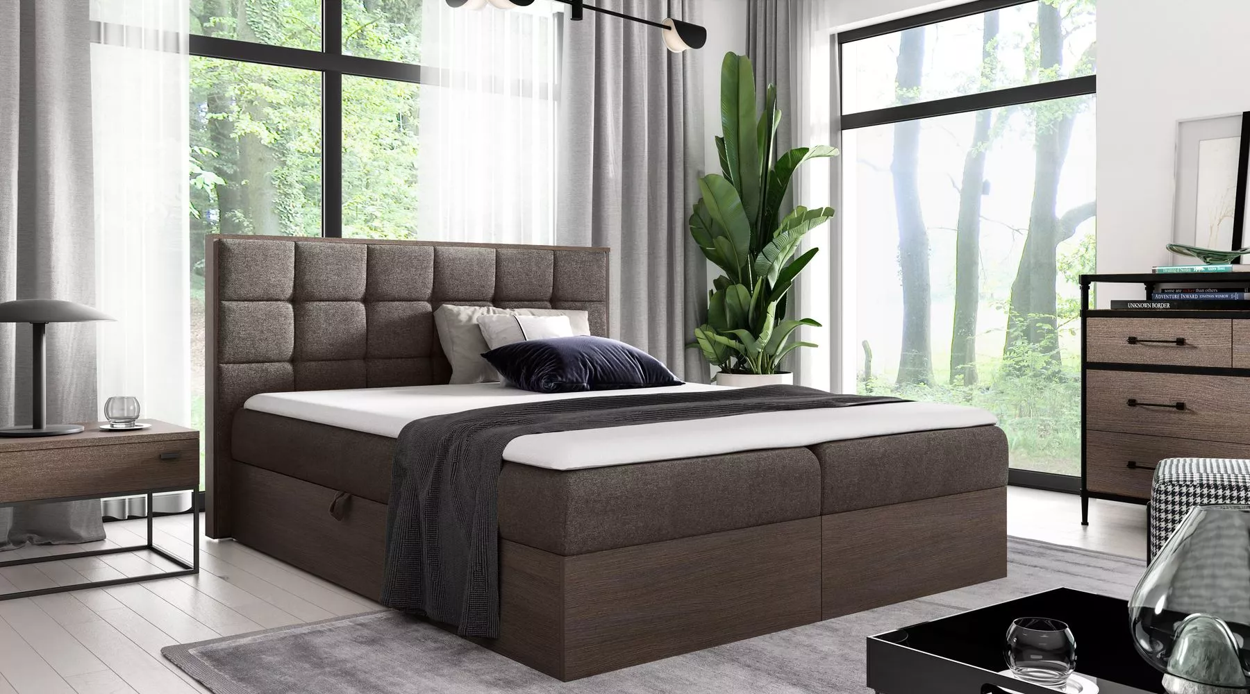 Kontinentální postel 200x200 CHANTELLE 1 - tmavý dub / hnědá + topper ZDARMA