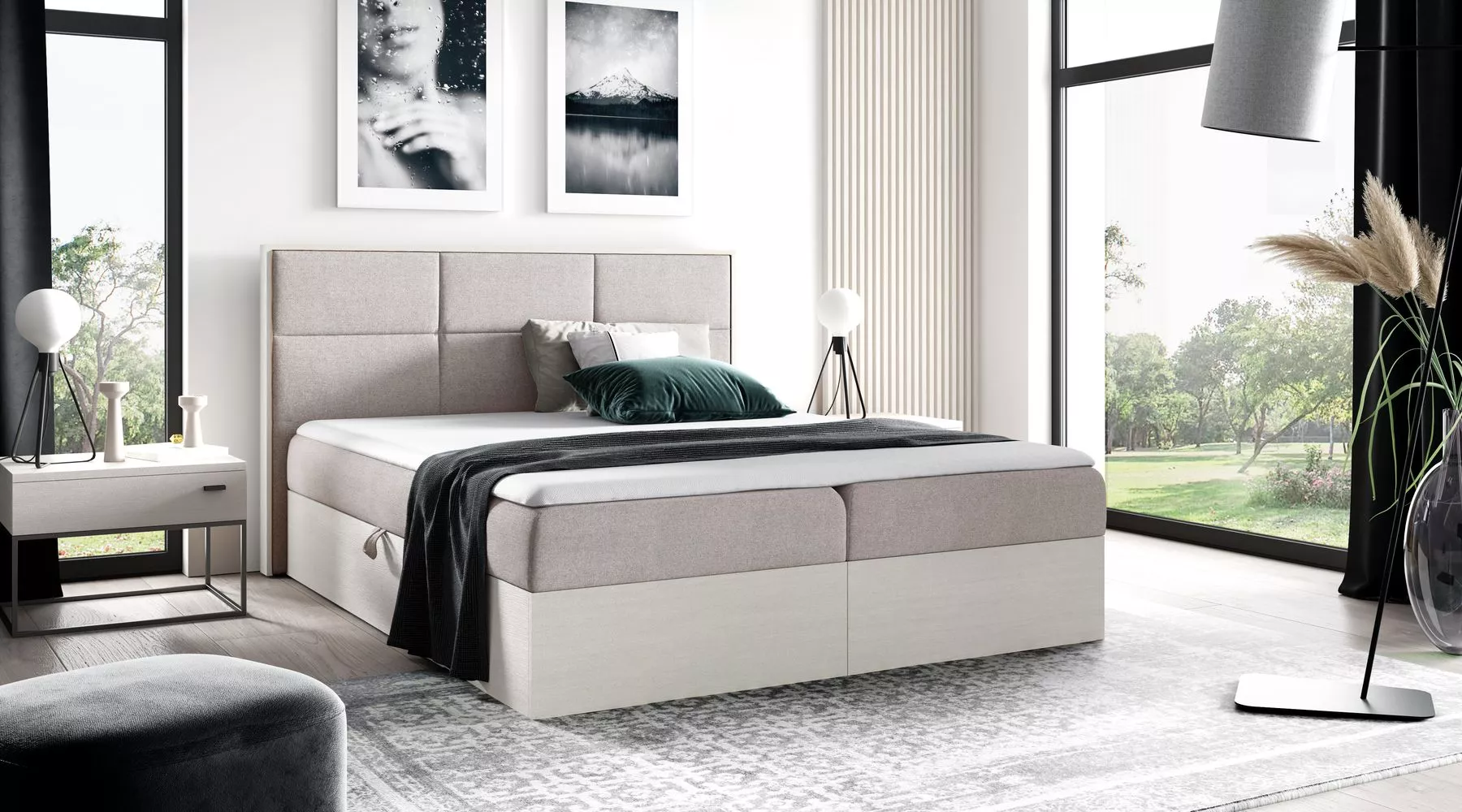 Kontinentální postel 120x200 CHANTELLE 2 - nordic teak / béžová + topper ZDARMA