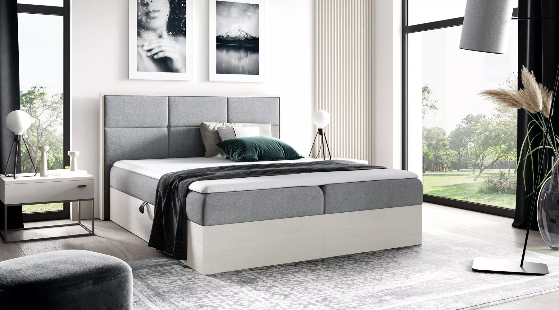 Kontinentální postel 180x200 CHANTELLE 2 se hodí do všech moderních ložnic. Součástí postele je úložný prostor, který je rozdělen na 2 části. Čalouněné čelo zajistí ještě větší pohodlí při odpočinku a zamezí poškrábání či zašpinění zdi.