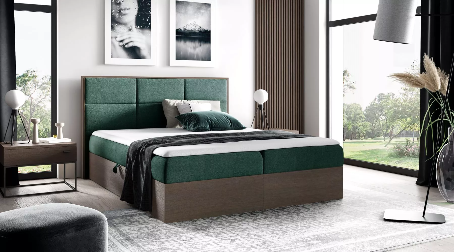Kontinentální postel 200x200 CHANTELLE 2 - tmavý dub / zelená + topper ZDARMA