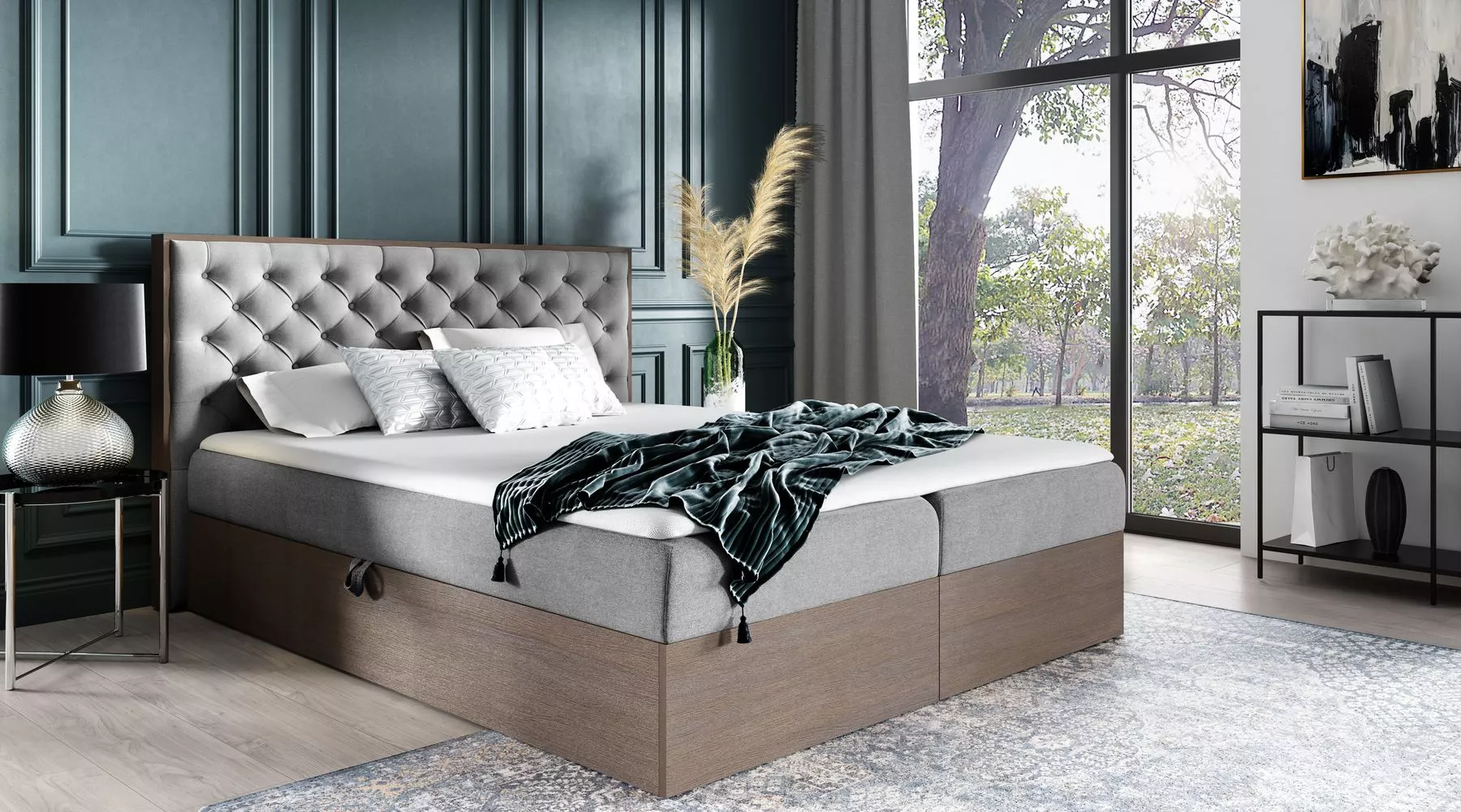Kontinentální postel 140x200 CHANTELLE 3 - tmavý dub / popelavá + topper ZDARMA