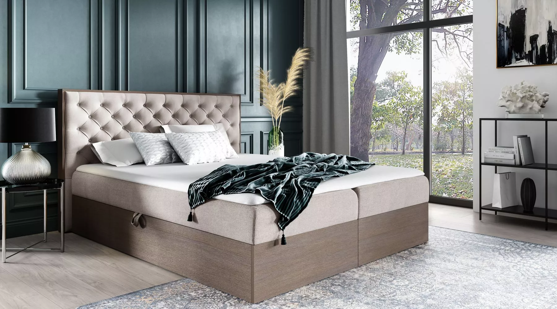 Kontinentální postel 200x200 CHANTELLE 3 - tmavý dub / béžová + topper ZDARMA