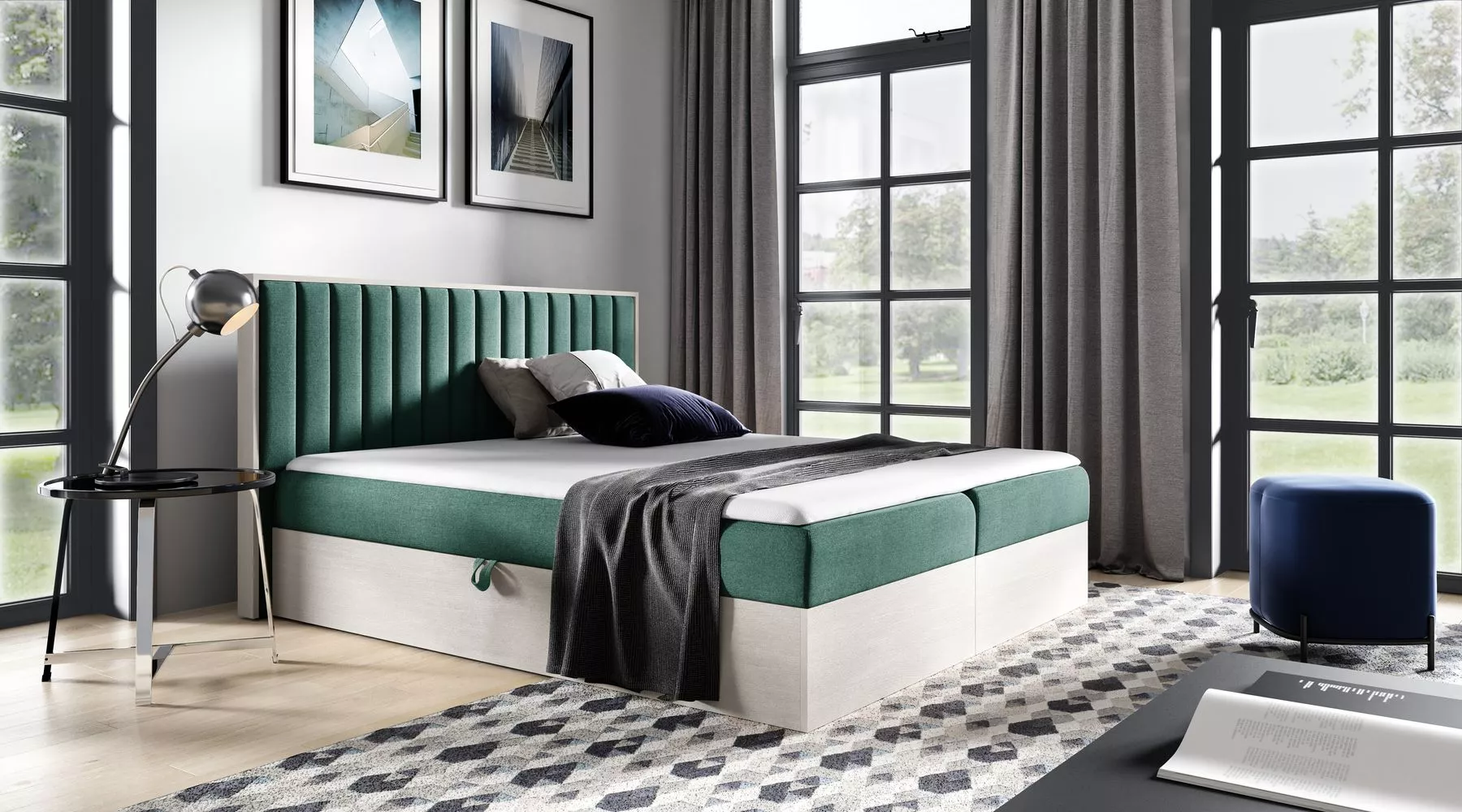 Kontinentální postel 120x200 CHANTELLE 4 - nordic teak / zelená + topper ZDARMA