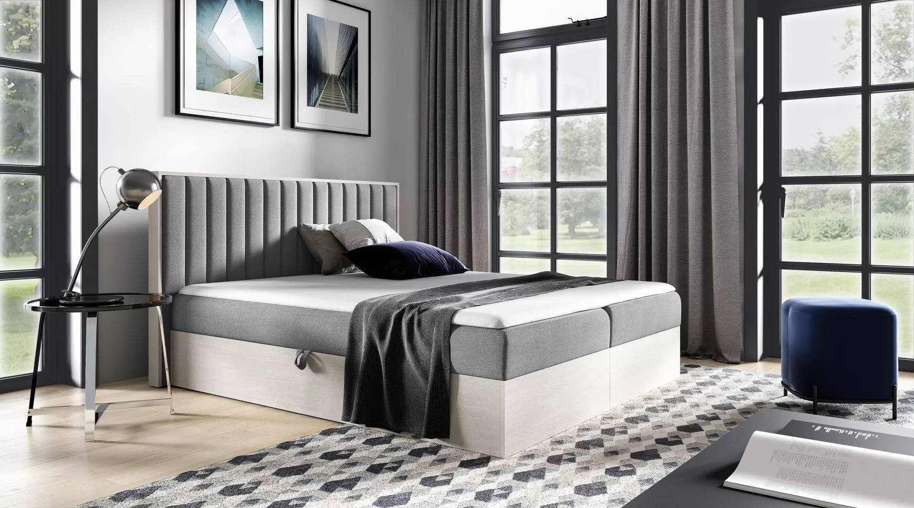 Kontinentální postel 140x200 CHANTELLE 4 se hodí do všech moderních ložnic. Součástí postele je úložný prostor, který je rozdělen na 2 části. Čalouněné čelo zajistí ještě větší pohodlí při odpočinku a zamezí poškrábání či zašpinění zdi.