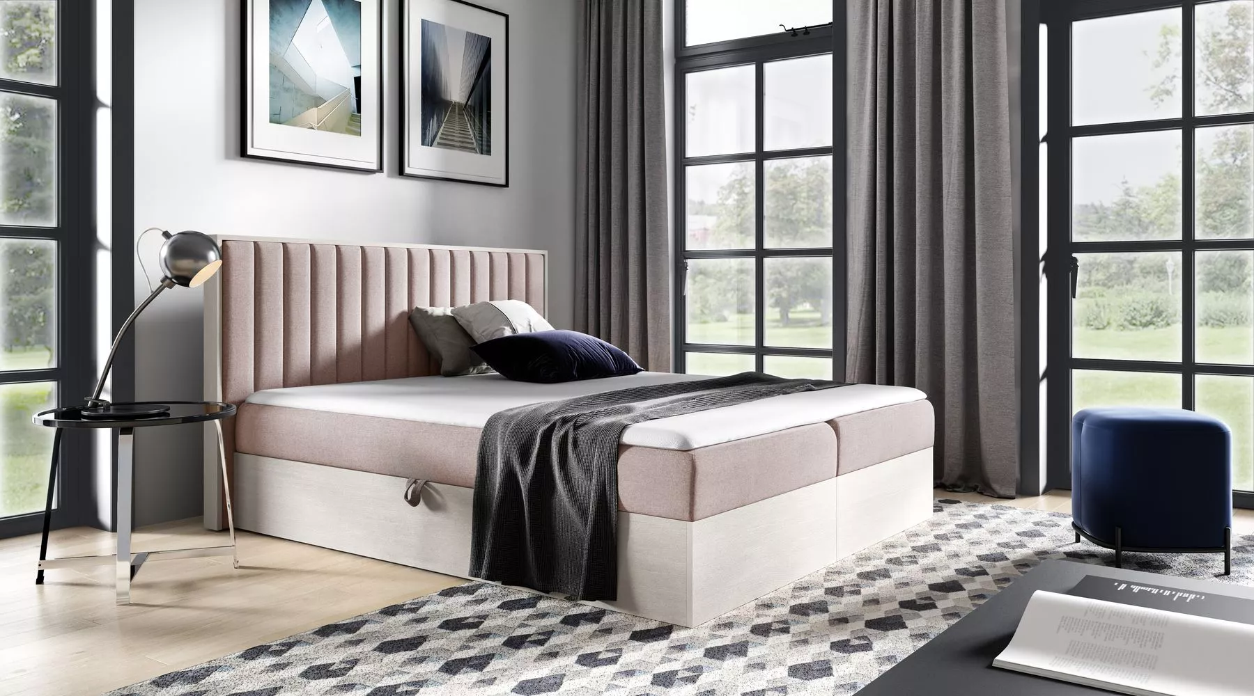 Kontinentální postel 200x200 CHANTELLE 4 se hodí do všech moderních ložnic. Součástí postele je úložný prostor, který je rozdělen na 2 části. Čalouněné čelo zajistí ještě větší pohodlí při odpočinku a zamezí poškrábání či zašpinění zdi.
