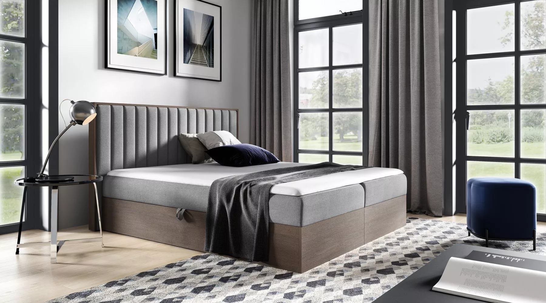 Kontinentální postel 120x200 CHANTELLE 4 - tmavý dub / tmavě šedá + topper ZDARMA
