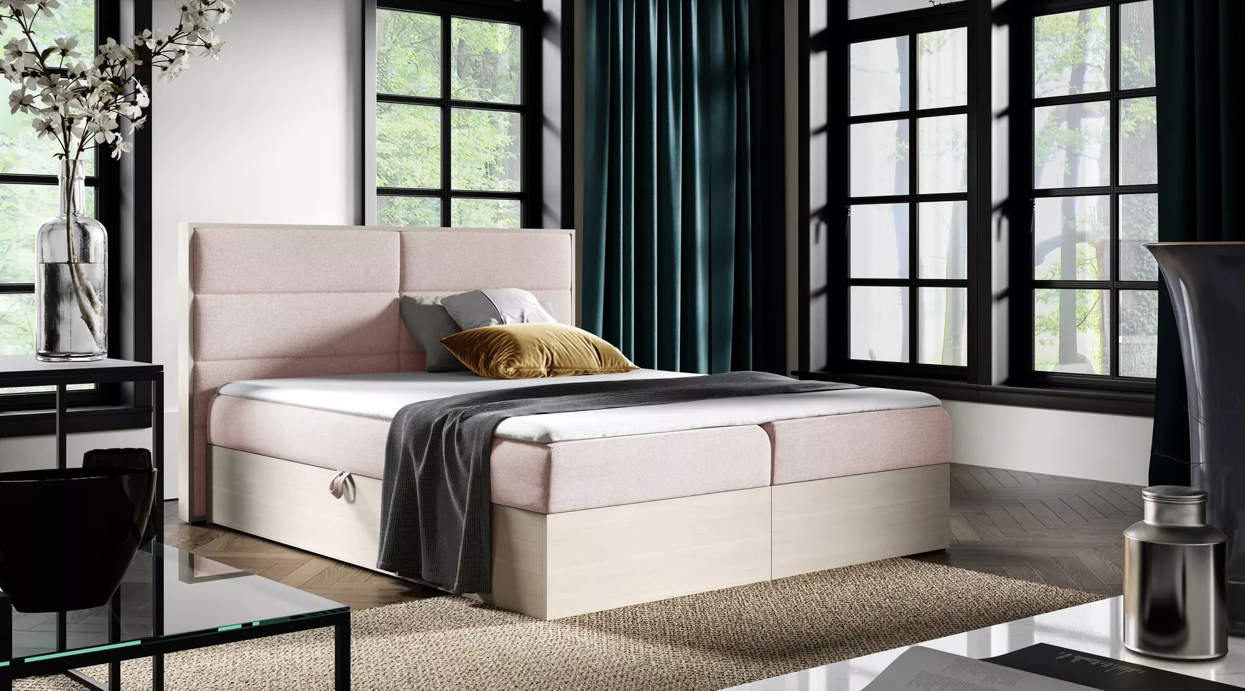Kontinentální postel 140x200 CHANTELLE 5 se hodí do všech moderních ložnic. Součástí postele je úložný prostor, který je rozdělen na 2 části. Čalouněné čelo zajistí ještě větší pohodlí při odpočinku a zamezí poškrábání či zašpinění zdi.