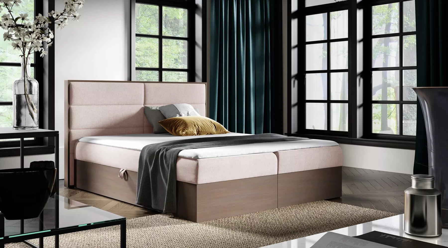Kontinentální postel 120x200 CHANTELLE 5 - tmavý dub / růžová + topper ZDARMA