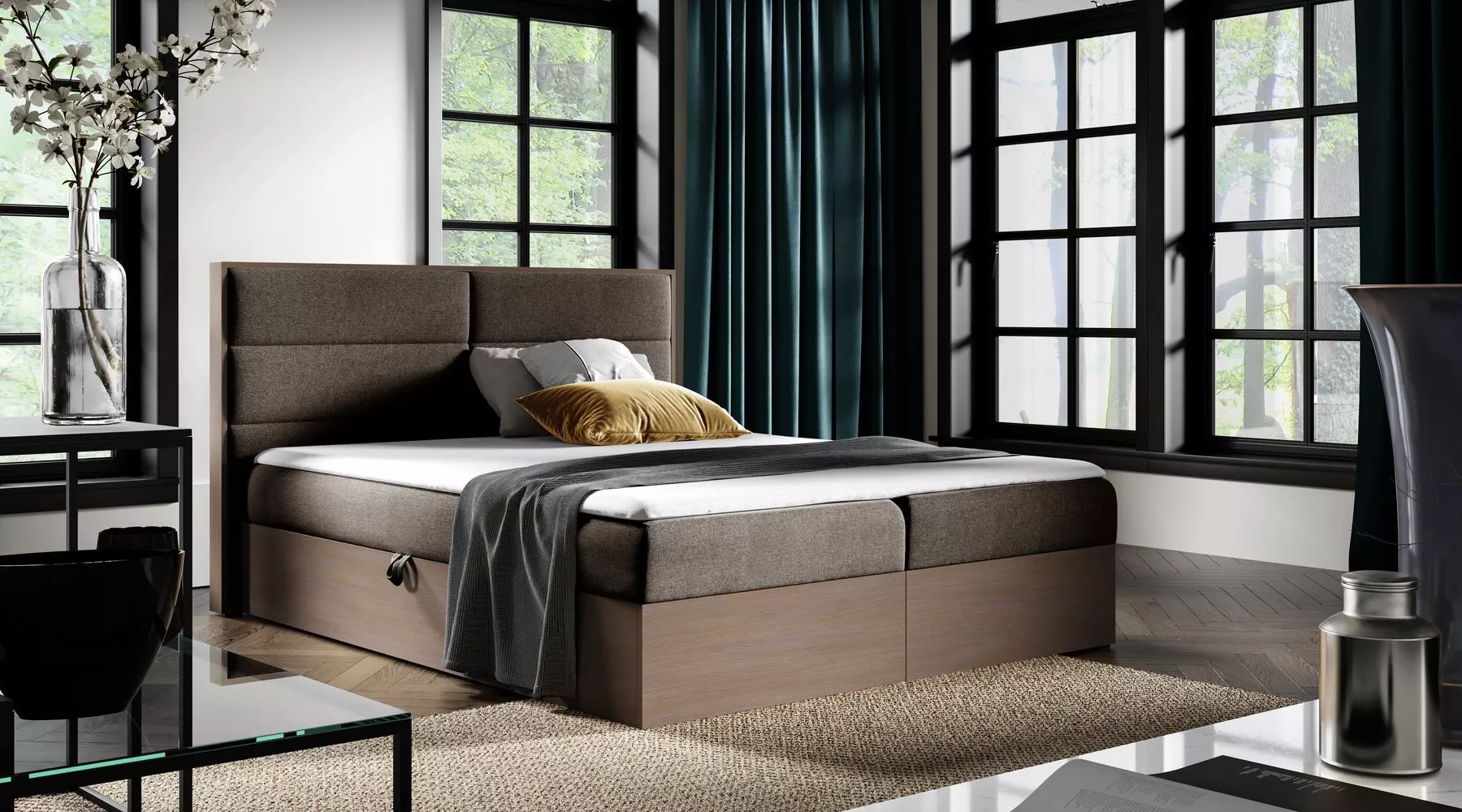 Kontinentální postel 120x200 CHANTELLE 5 - tmavý dub / hnědá + topper ZDARMA