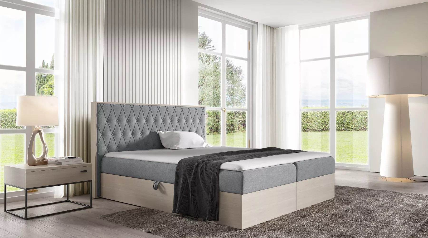 Kontinentální postel 120x200 CHANTELLE 6 - nordic teak / šedá + topper ZDARMA