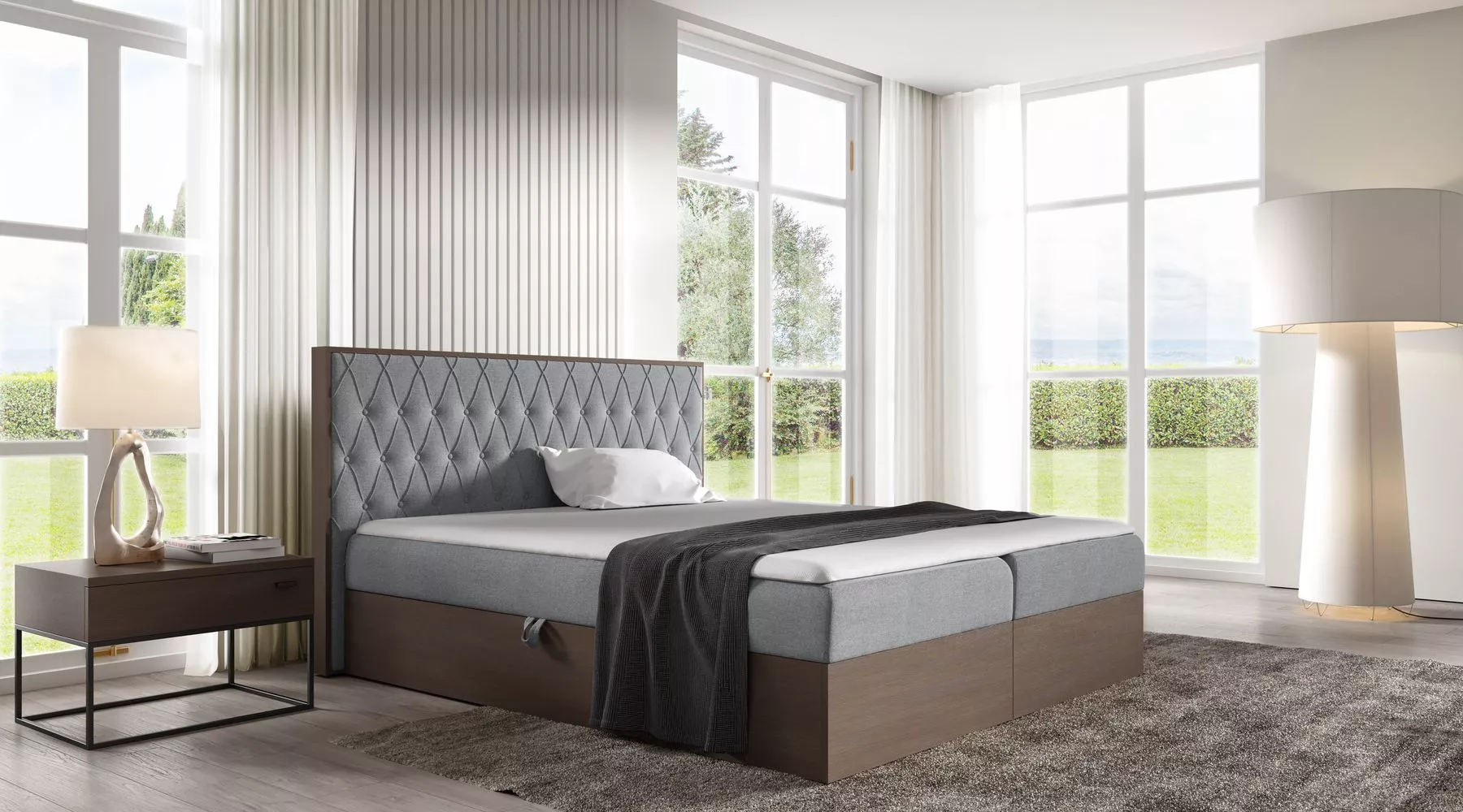 Kontinentální postel 180x200 CHANTELLE 6 - tmavý dub / šedá + topper ZDARMA
