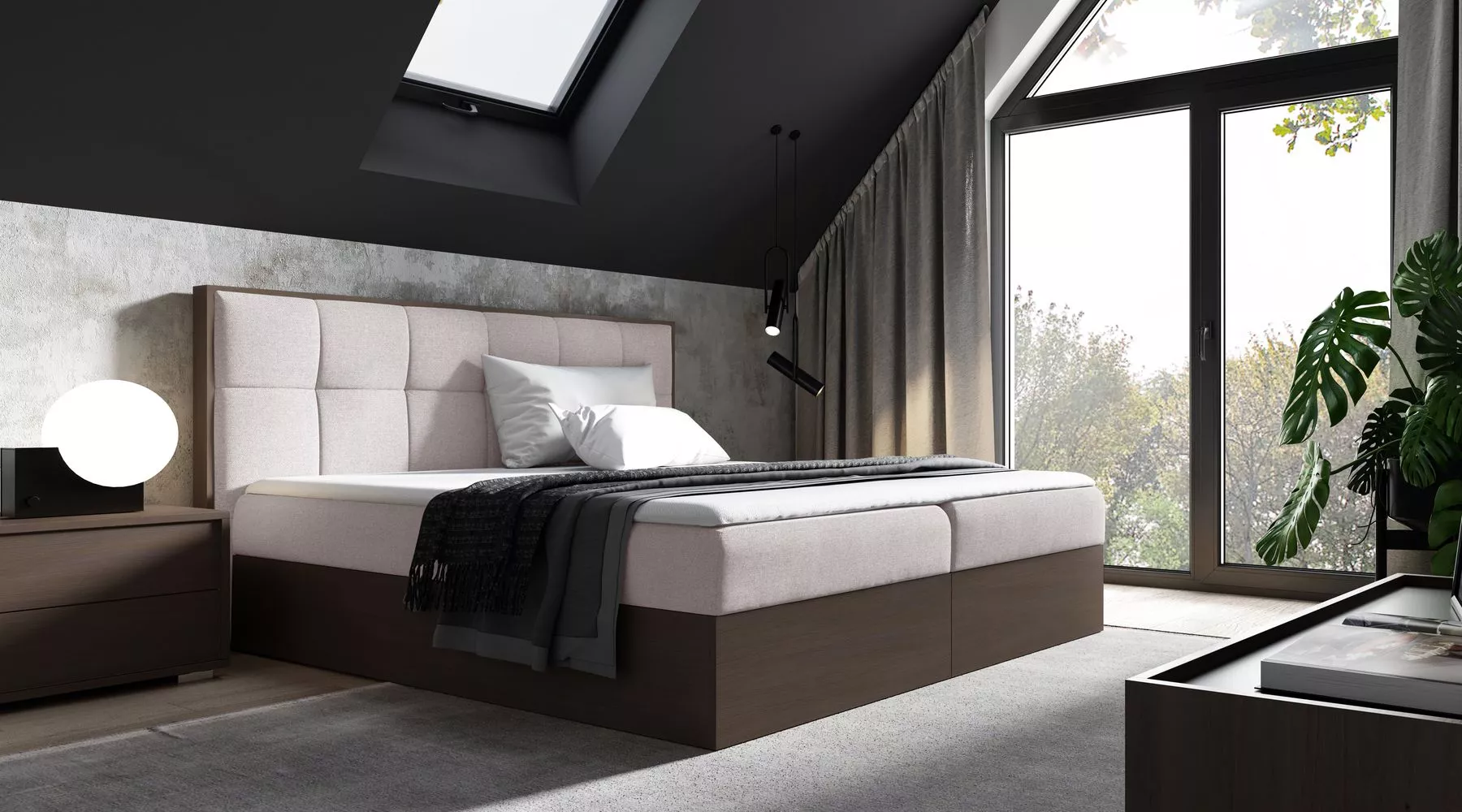 Kontinentální postel 160x200 CHANTELLE 8 - tmavý dub / béžová + topper ZDARMA