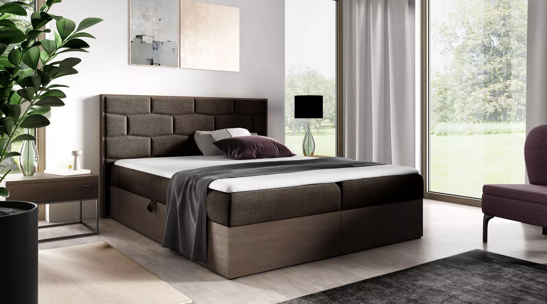 Kontinentální postel 160x200 CHANTELLE 9 - tmavý dub / hnědá + topper ZDARMA