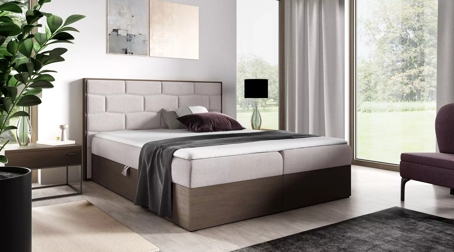 Kontinentální postel 180x200 CHANTELLE 9 - tmavý dub / béžová + topper ZDARMA